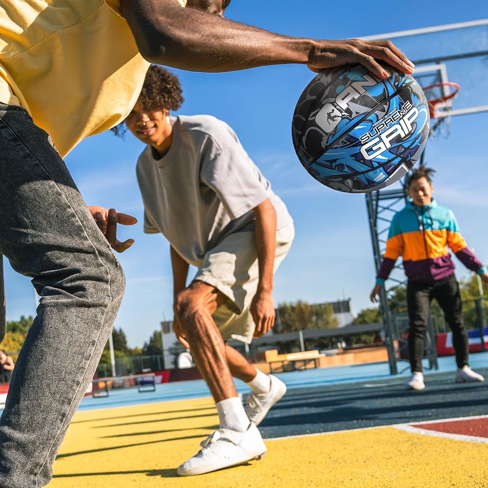 You haven't really enjoyed basketball unless you've played using AND1 Supreme Grip Advanced Premium Rubber Basketball. This regulation size ball (29.5" ) can be inflated right out of the box using the 12" hand pump. It is made from premium cushioned rubber material designed to withstand normal wear and tear. Its deep channel construction improves ball grip, making it easier to control when dribbling or shooting. It's time to take your game to the next level with AND1 Supreme Grip Basketball! Whether you're playing a pickup game at the park, going 1v1 at the gym, or practicing your free throw shots along your driveway, AND1 Supreme Grip Basketball is your go-to buddy. It caters to both casual basketball players and competitive athletes of all levels. Rain or shine, indoors or out, we want you to simply enjoy basketball. Your satisfaction matters, so we made sure to complete your basketball experience with AND1 Supreme Grip Advanced Premium Rubber Basketball. Surprise your kid, teen, or adult loved one with it now!
