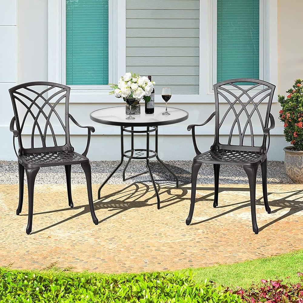 【STYLISH & EXQUISITE BISTRO TABLE】 Our outdoor patio bistro table has the glass tabletop of matte and water wave texture, and the the curved of 4 legs is also aesthetic, all these making it a eye-catching point to your backyard. The elegant appearance is so versatile that can fit any occasion, such as patio, deck, backyard, balcony, pool.