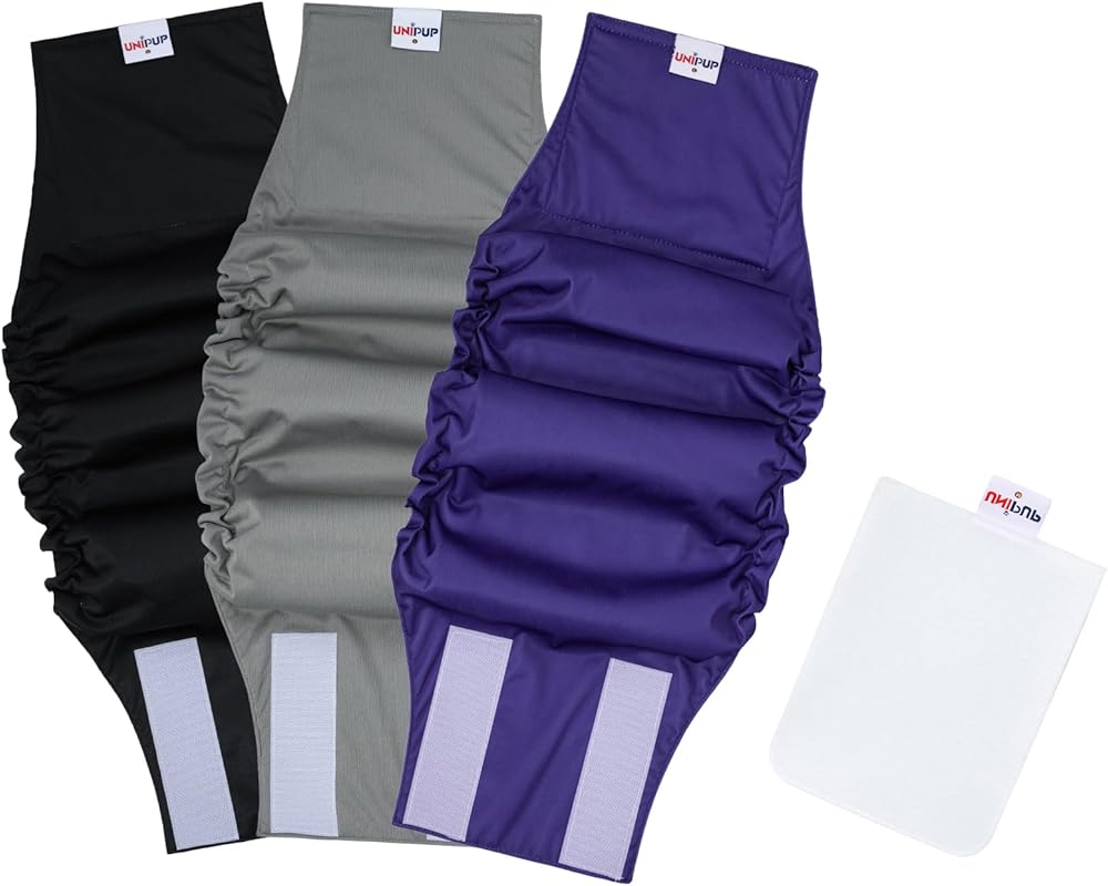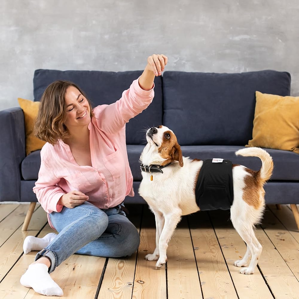 Ideal for Untrained Puppies: Our dog diapers male are specially designed to address urinary incontinence, spot marking, and excitement urination. Made with soft and leakproof materials, these dog wraps feature a soft jersey inner layer that wicks away moisture and keeps your male dog drier during prolonged use. Give your male doggie the comfort and protection he deserves.