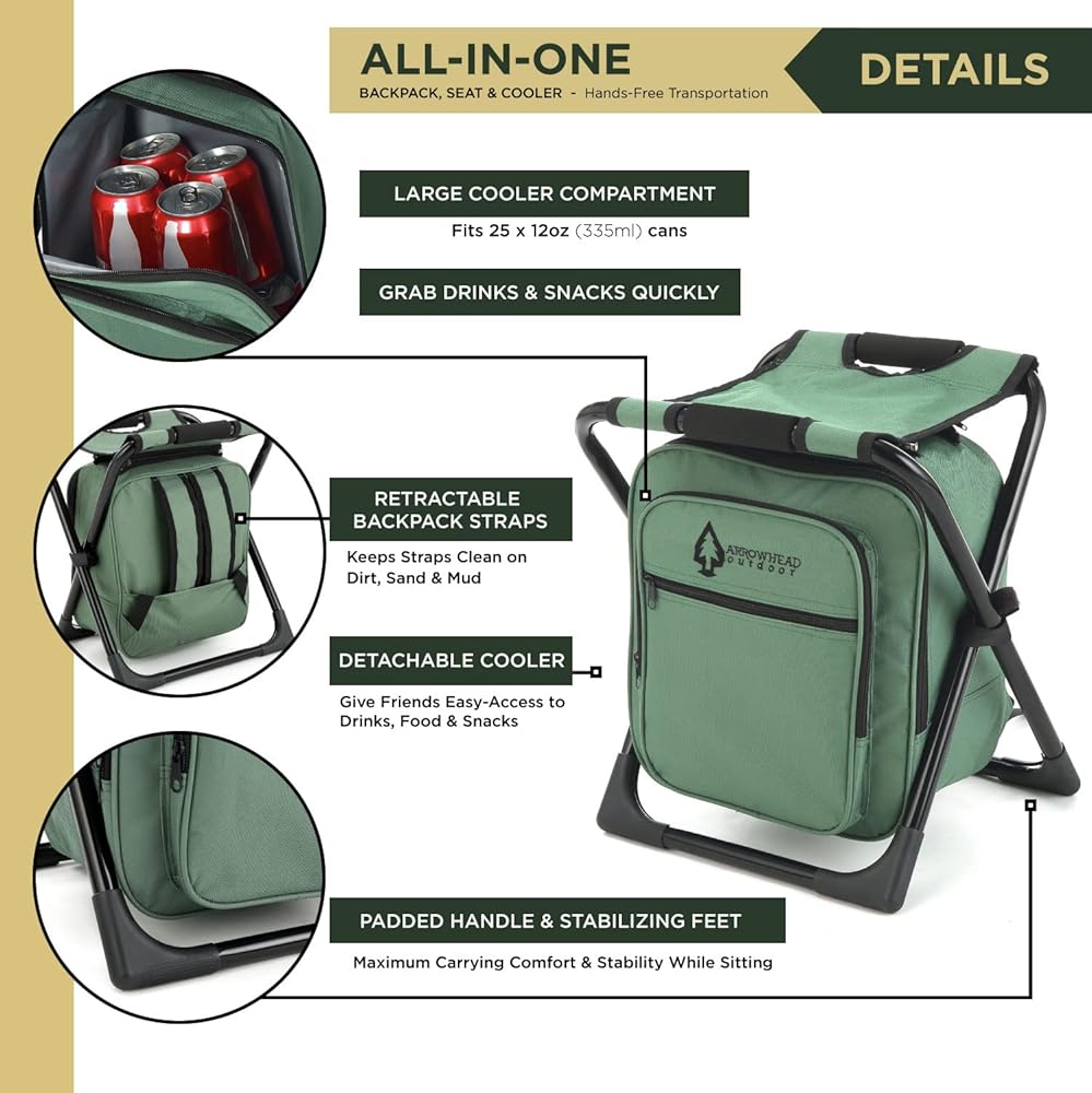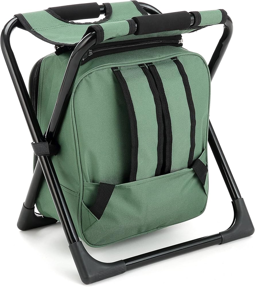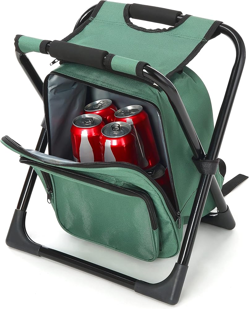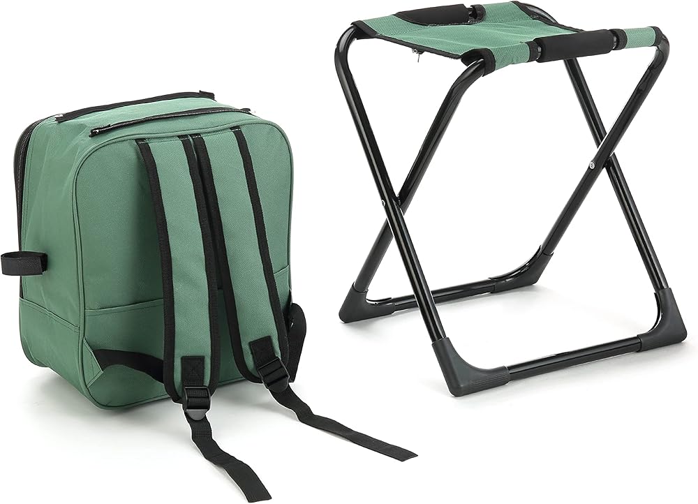 - Compact Backpack Folding Camp Chair Stool with Insulated bag and Storage Pockets