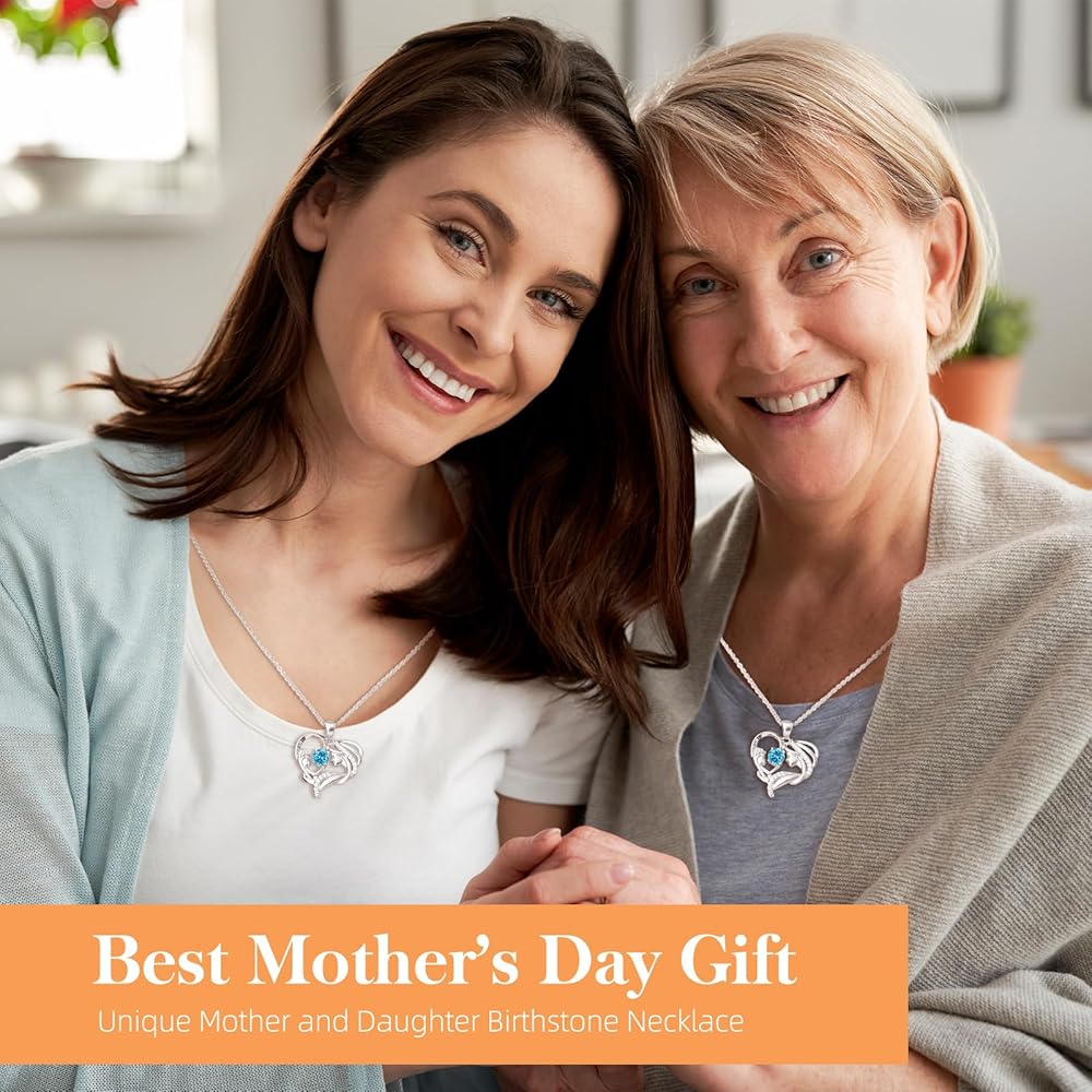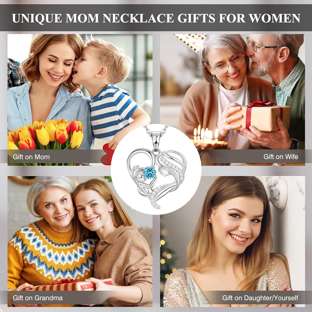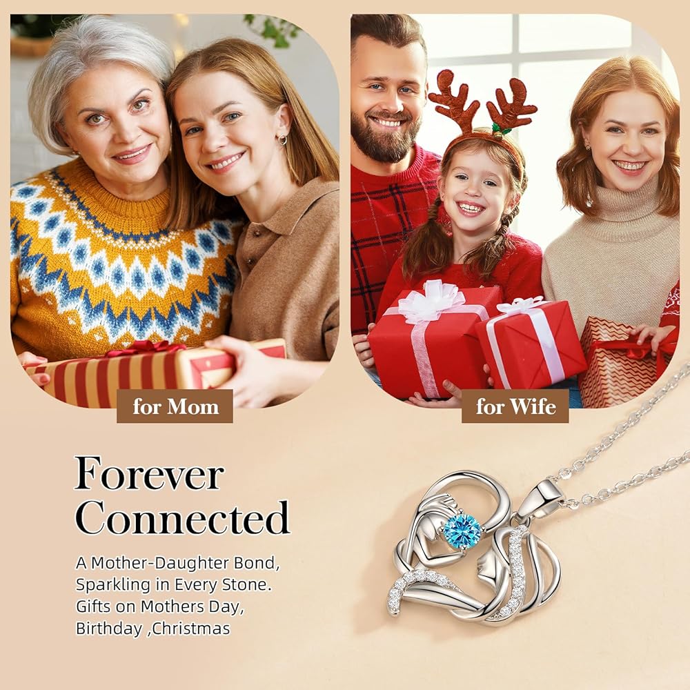 Mother Daughter Necklace for Mom Gifts for Christmas, S925 Sterling Silver Filled Mom Necklaces for Women New Moms Jewelry Birthday Mothers Day Gifts for Mother Grandma Wife from Daughter Son