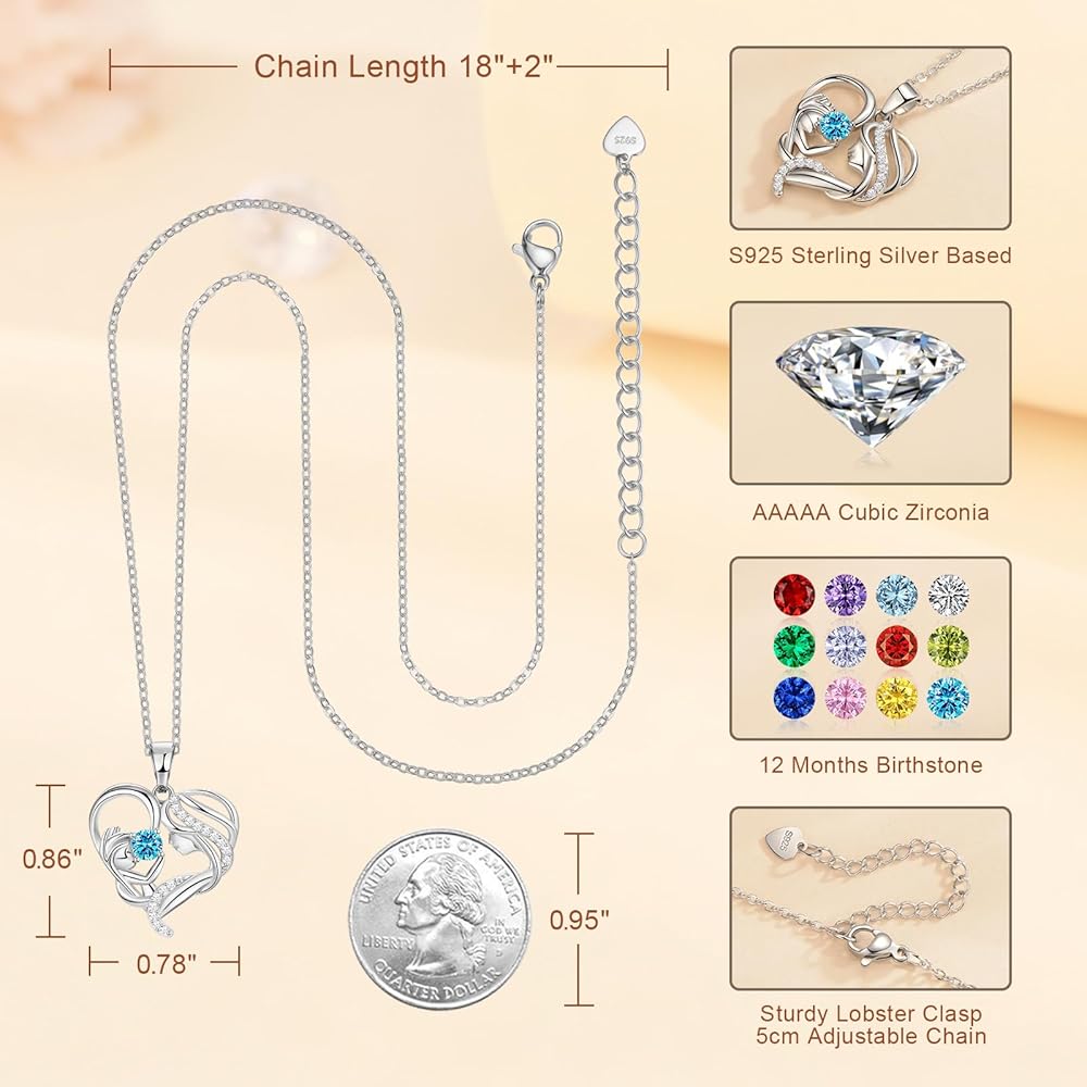 💎【S925 Sterling Silver Necklace】S925 sterling silver-based mother necklaces are adorned with 5A cubic zirconia, adding an extra touch of sparkle and elegance, non-fading, hypoallergenic, lead-free and nickel-free, ensuring optimal comfort during wear. (Chain Length 18"+2" extension chain, Pendant size 0.78" x 0.86")