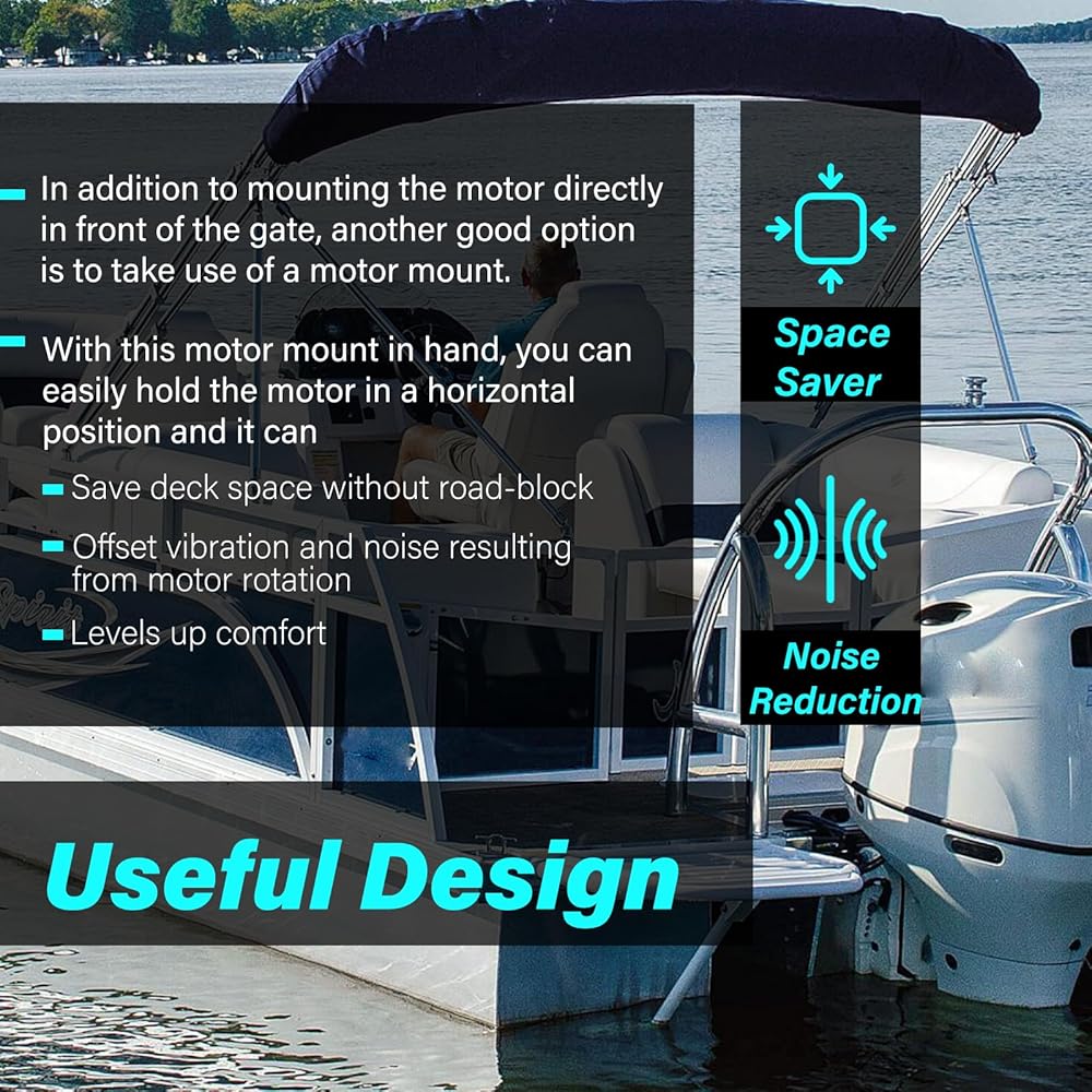 ✴️【Innovative Design】Instead of mounting the motor directly in front of the gate, many prefer to hold the motor in a horizontal position with a motor mount. In this case, our mount will work for you motor without taking up any deck space or blocking the gate. Also, it can offset some vibration and noise from the motor, which levels up you comfort.