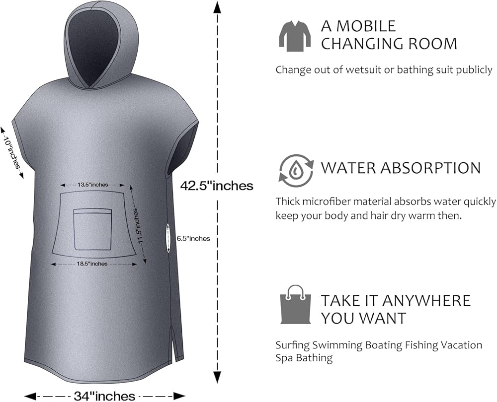 - One Size Fits All: Anyone can use this surf poncho, Men or women