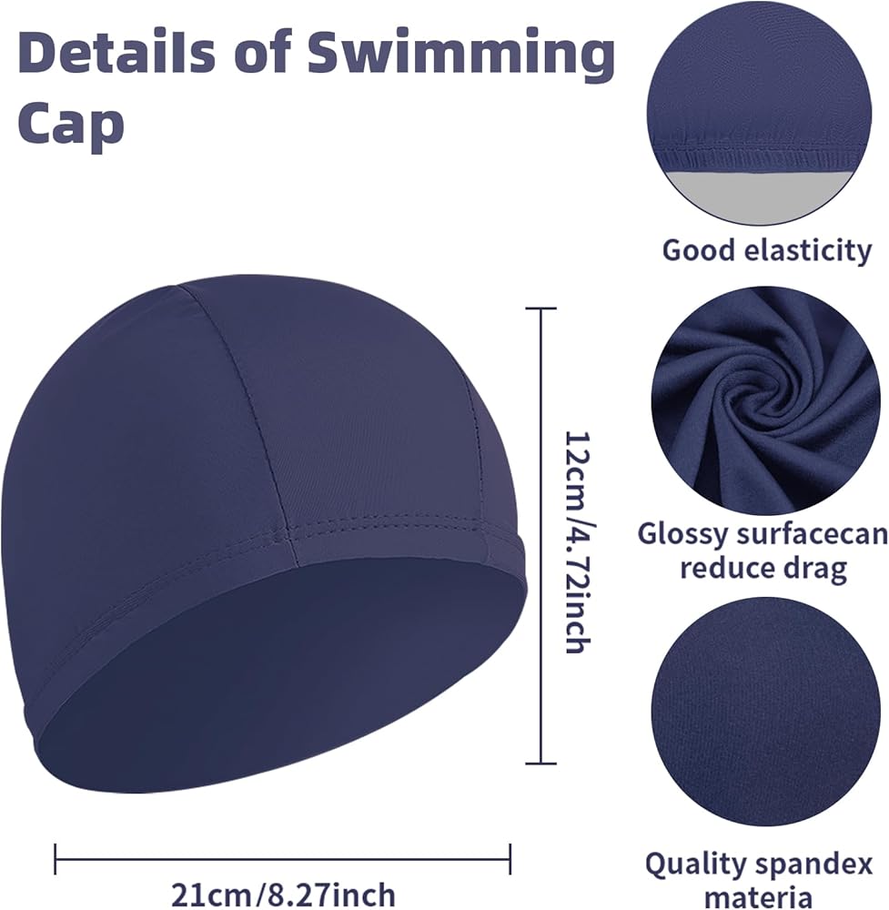 • Swimming cap: the swimming cap is made of quality spandex materia, which has strong durability and elasticity, which is not only soft and comfortable to wear, not easy to fade and tear, durable and practical, but also can be applied for a long time