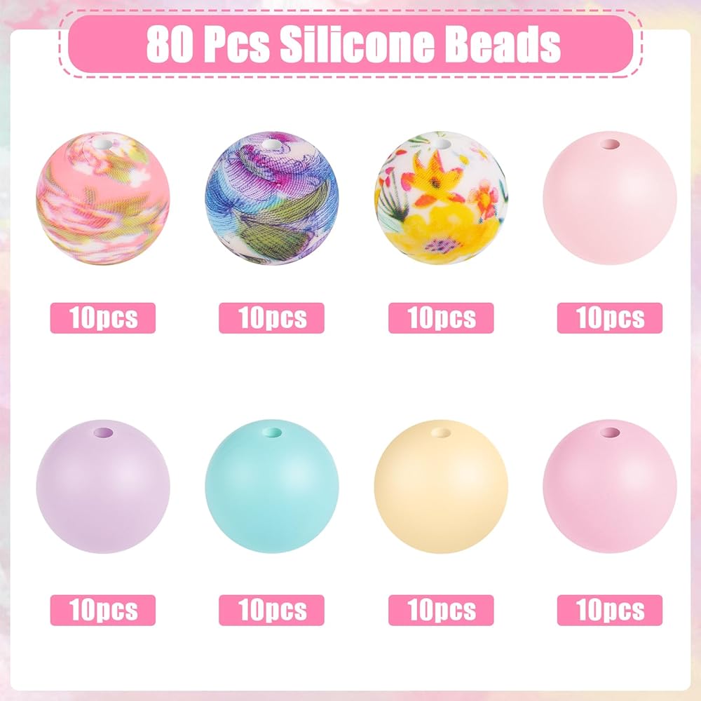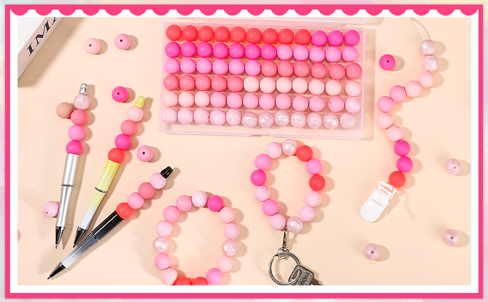 【8 Different Pink Colors】The package contains 80 pcs pink 15mm siliocne beads, a total of 8 different pink colors (6 solid colors, 1 pearlescent color, and one with pattern), 10 beads in each color, multiple colors can match your different needs DIY design, transparent plastic box packaging for easy portability and storage.