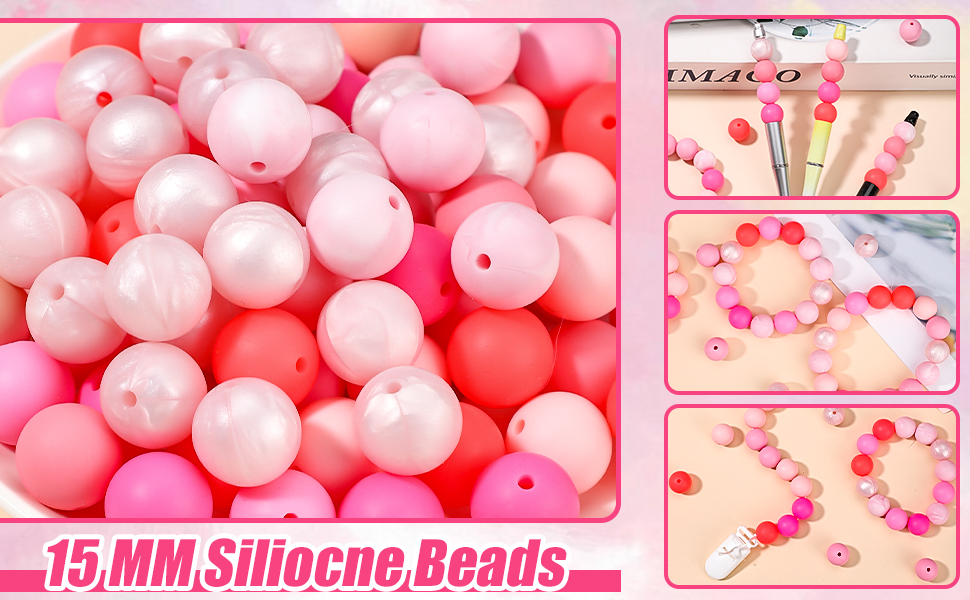 【Pink Beads Material】Silicone beads 15mm are made of soft silicone, which is not easy to wear and fade. Valentines day silicone beads are soft, smooth, and easy to clean with soap and water, making them a hygienic choice for keychains, jewelry, and more.