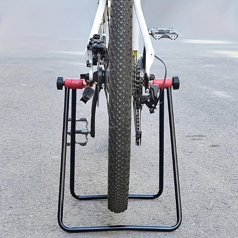 Lightweight and portable bike stand, perfect for road bikes. Features a convenient folding mechanism for easy storage. Sturdy construction with anti-slip design, prevents slipping during use. Suitable for bike storage and maintenance in the garage. Save space and keep your bike secure with this innovative stand.