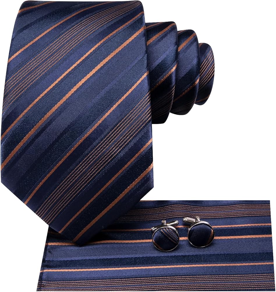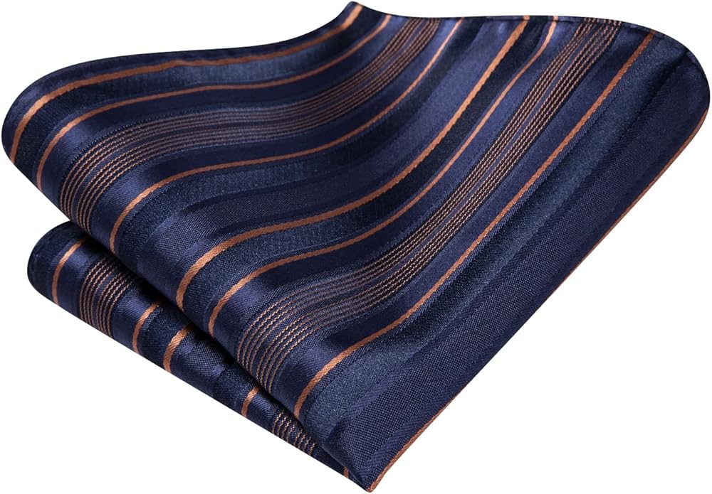 Hi-Tie Men's Tie Sets Silk Formal Striped Necktie and Pocket Square Cufflinks Wedding Business,Navy and Gold Stripe