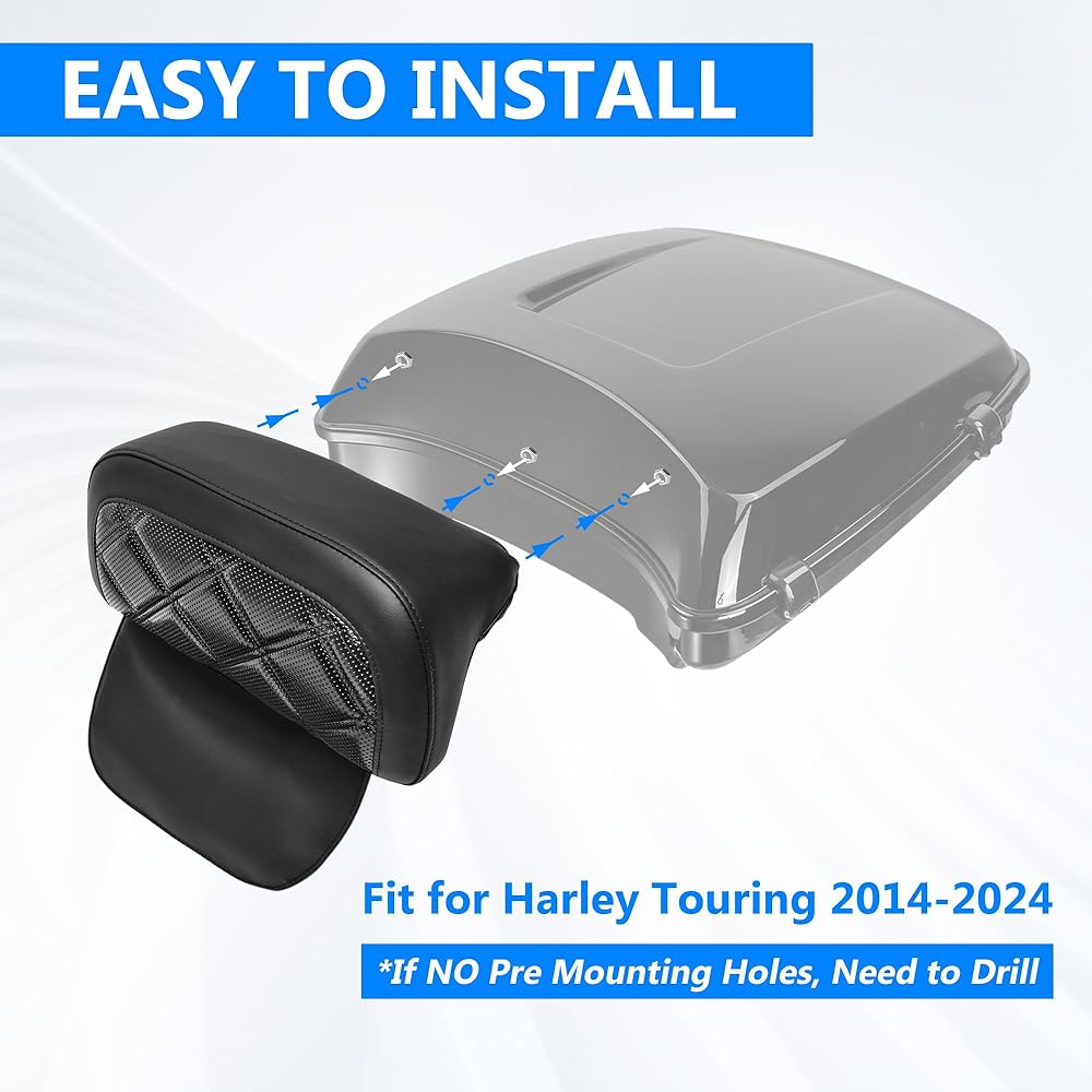[Widely Fitment]: This Chopped Trunk Backrest Pad universal Fit for Harley Road Glide, Road King, Street Glide, Tri Glide, Ultra Limited, and Electra Glide FLTRX Models from 2014 to 2023.