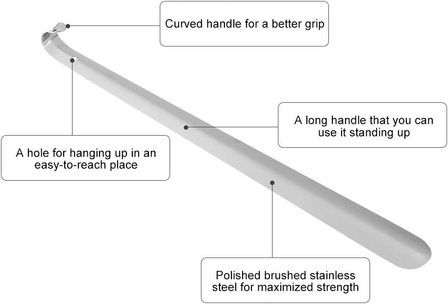 Long Metal Shoe Horn, Stainless Steel Shiny Silver Metal Shoe Boots Horn with Handle for Men Women Kids Seniors