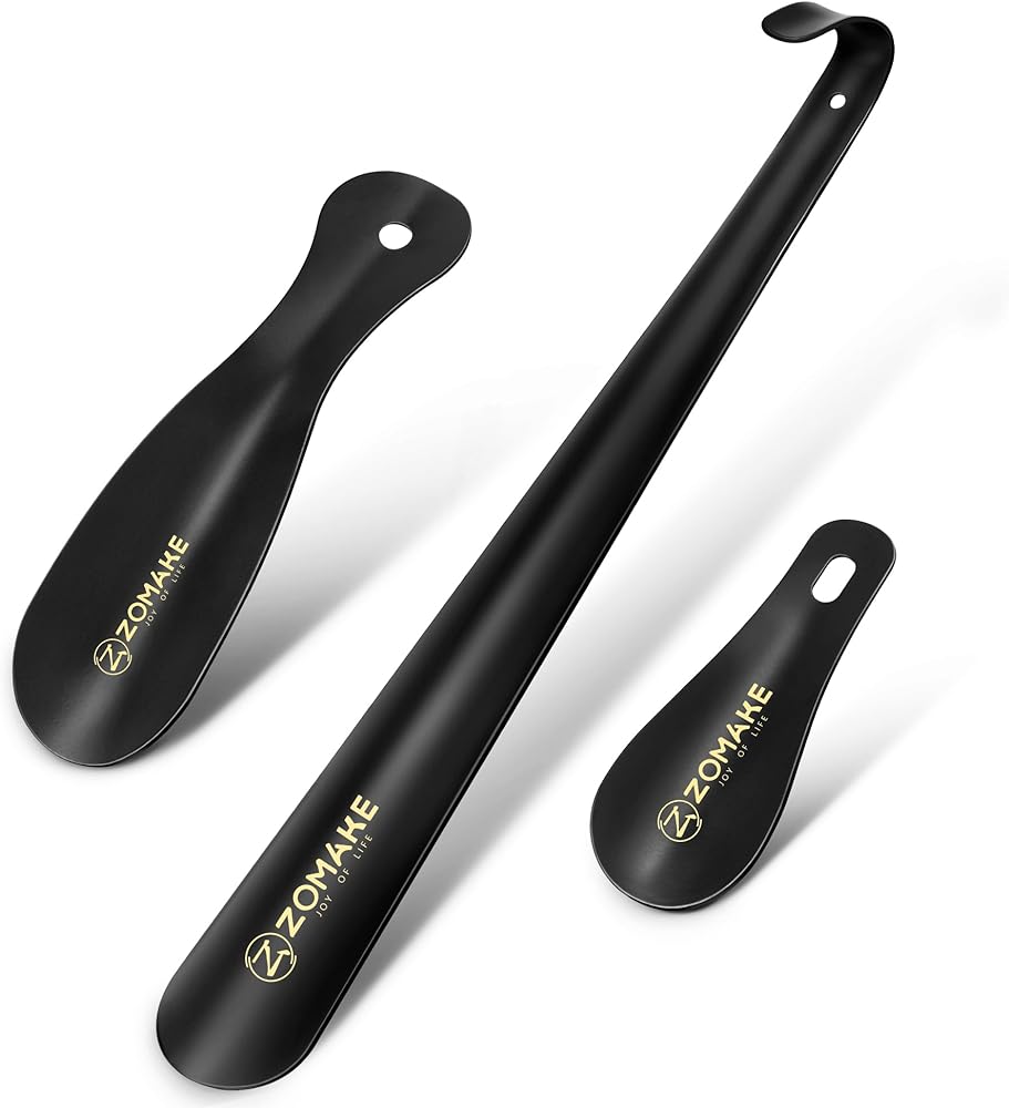 👠 PERFECT SHOE HELPER: The ZOMAKE 3 piece shoe horn set perfectly solves a family's shoe wearing problem. The 16.5-inch long shoe horn is suitable for adults to use and can help elderly or pregnant women wear shoes more easily, reducing bending activities. The 7.5 inch and mini shoehorns are suitable for kids or travelers to use and can help them put on shoes faster.