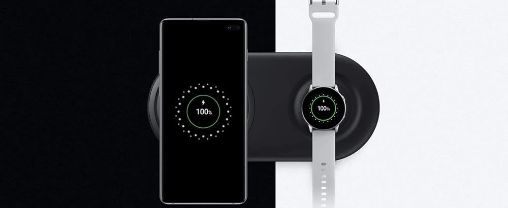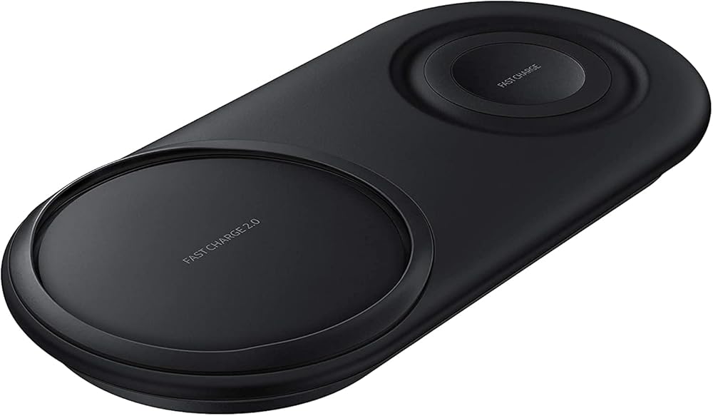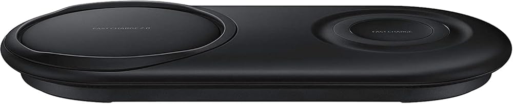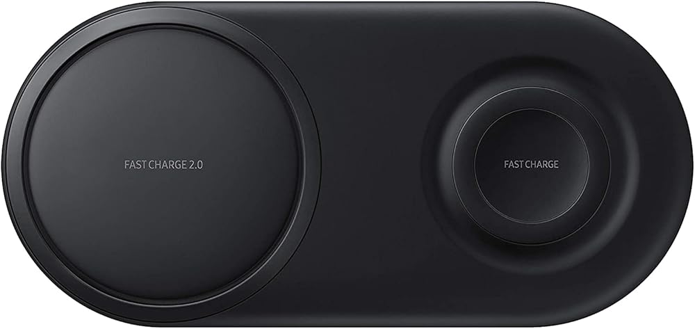 لوحة شحن لاسلكية ثنائية الشحن معتمدة من Samsung Qi (EP-P5200TB) مع مروحة تبريد لأجهزة Galaxy وApple iPhone مختارة - شاحن سريع من النوع C بقدرة 25 وات (متجدد)