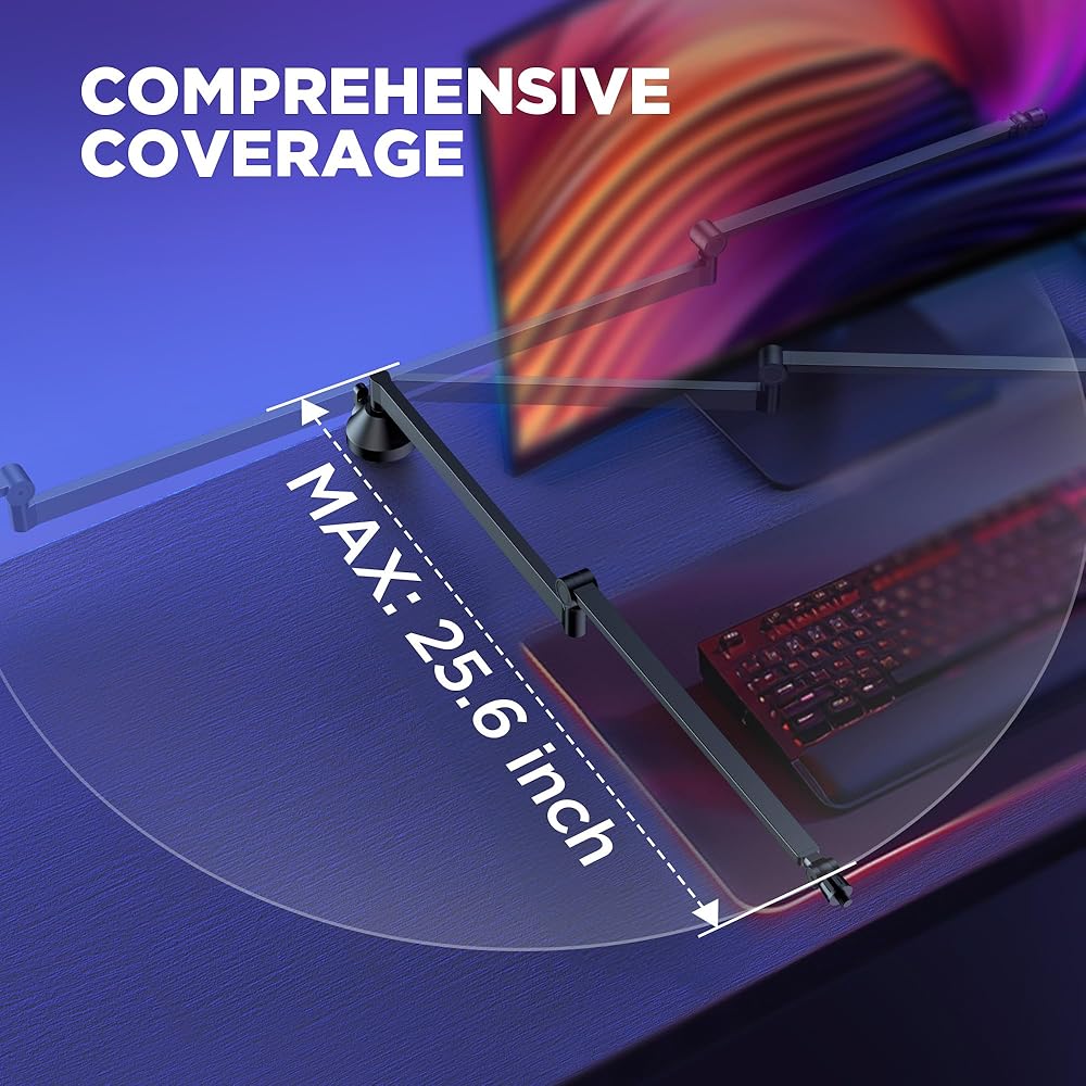 • Streamlined Low-Profile Arm Stand: Elevate your workspace with our sleek, low-profile boom arm, designed to seamlessly integrate with your desk setup. With its minimalistic design, this arm discreetly tucks beneath your monitor, ensuring an unobstructed view of your surroundings. Say goodbye to clutter and hello to a clean, professional workspace.