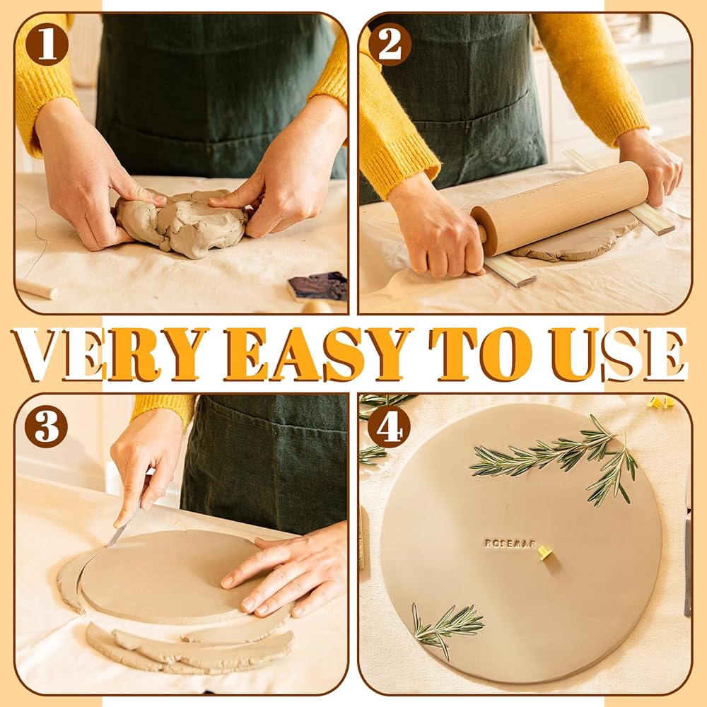 Easy to use: You just need to choose the right thickness, place the clay between two guides, and then roll it with a clay roller to get a flat piece of clay.