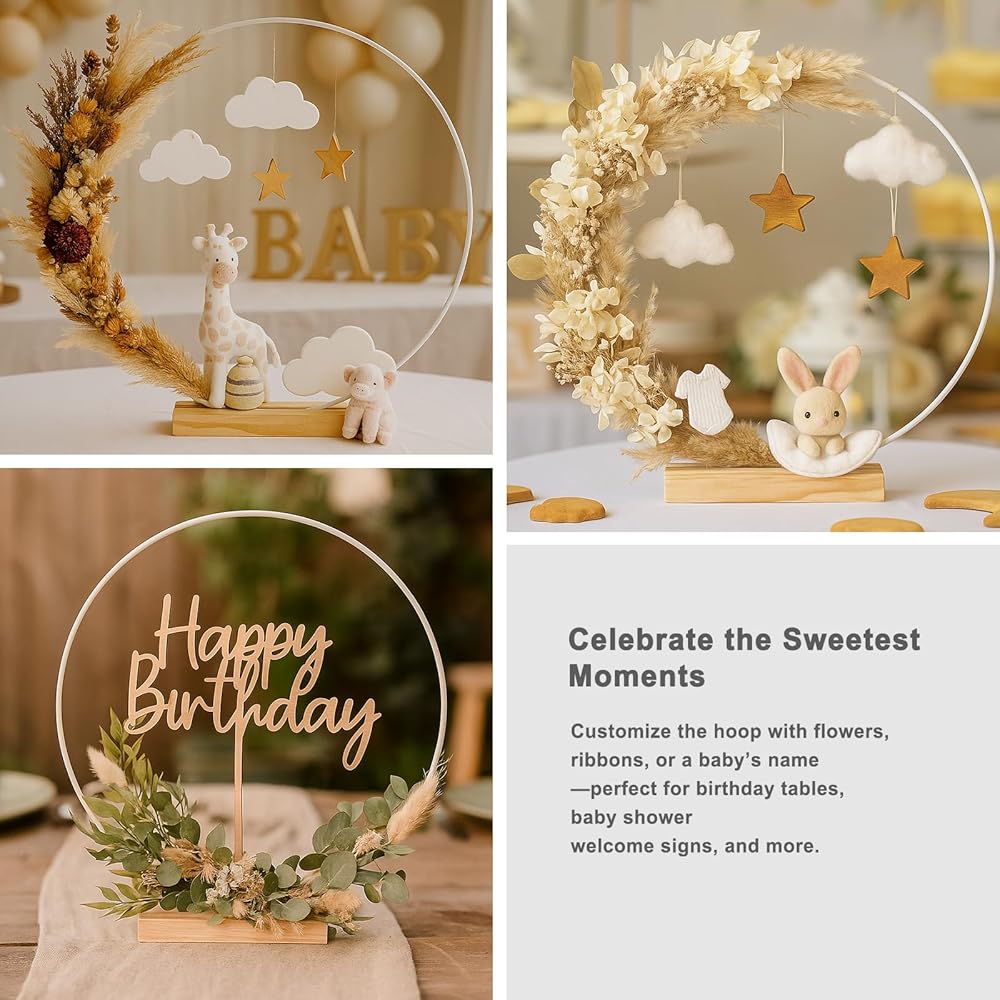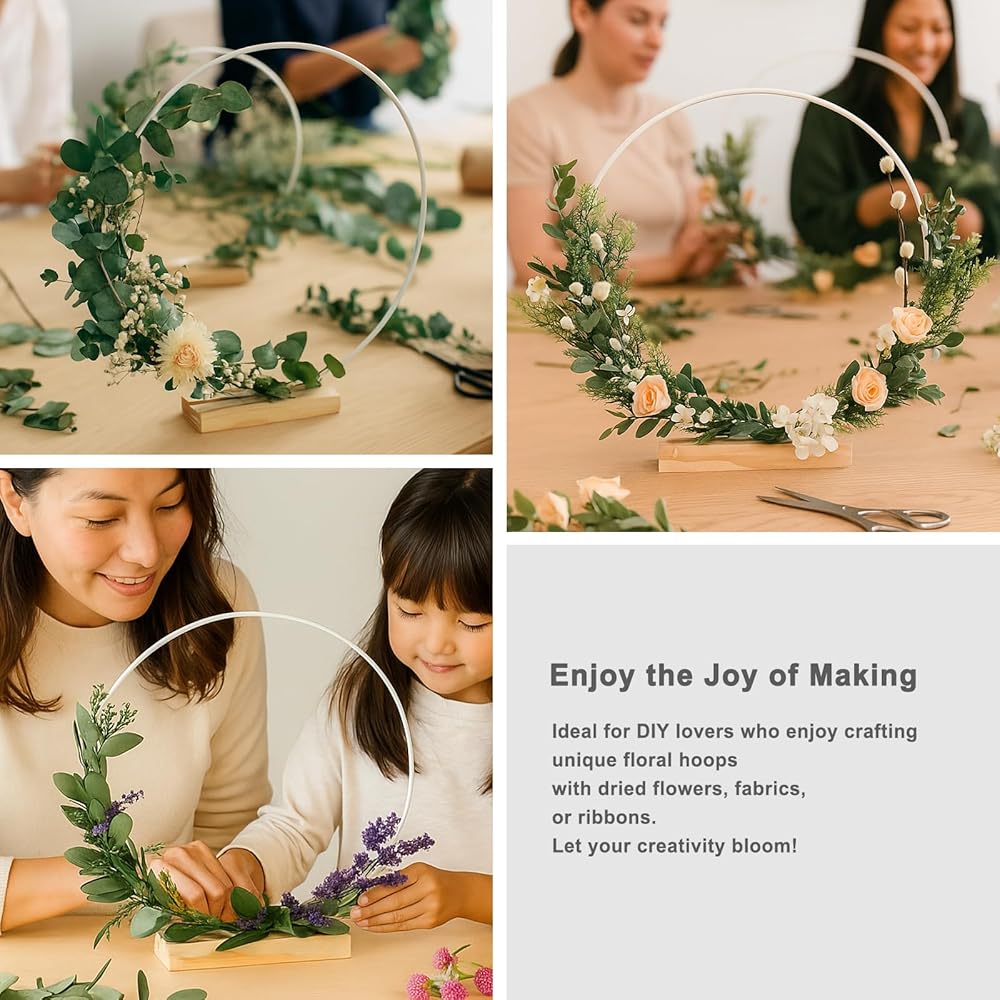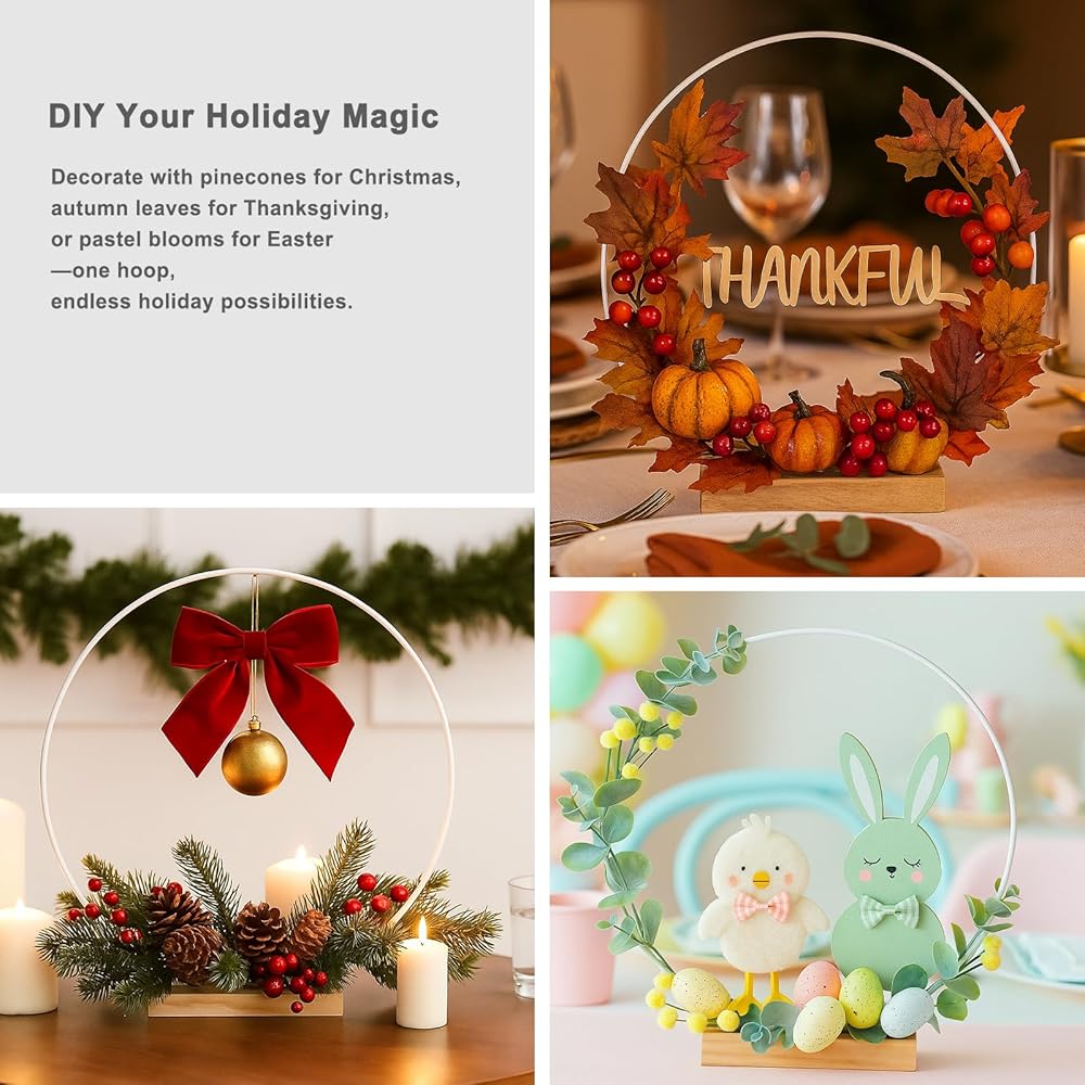 Works Well for Any Crafting Project: MJRASG metal hoops with wooden holder for crafts are perfect for DIY decor projects, such as making centerpiece table decorations, dream catchers, macrame creations, wind chimes, wedding wreaths, floral hoop wreaths, Christmas adornments, and other home decor projects.