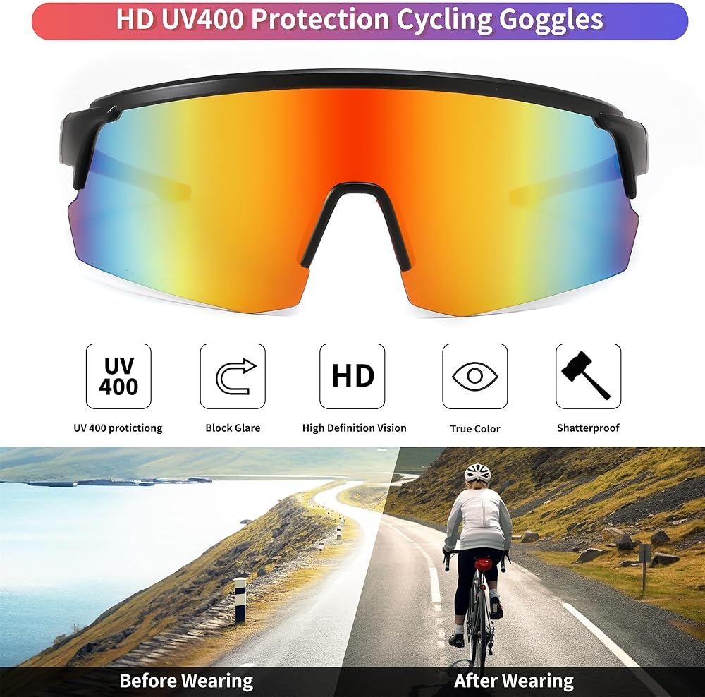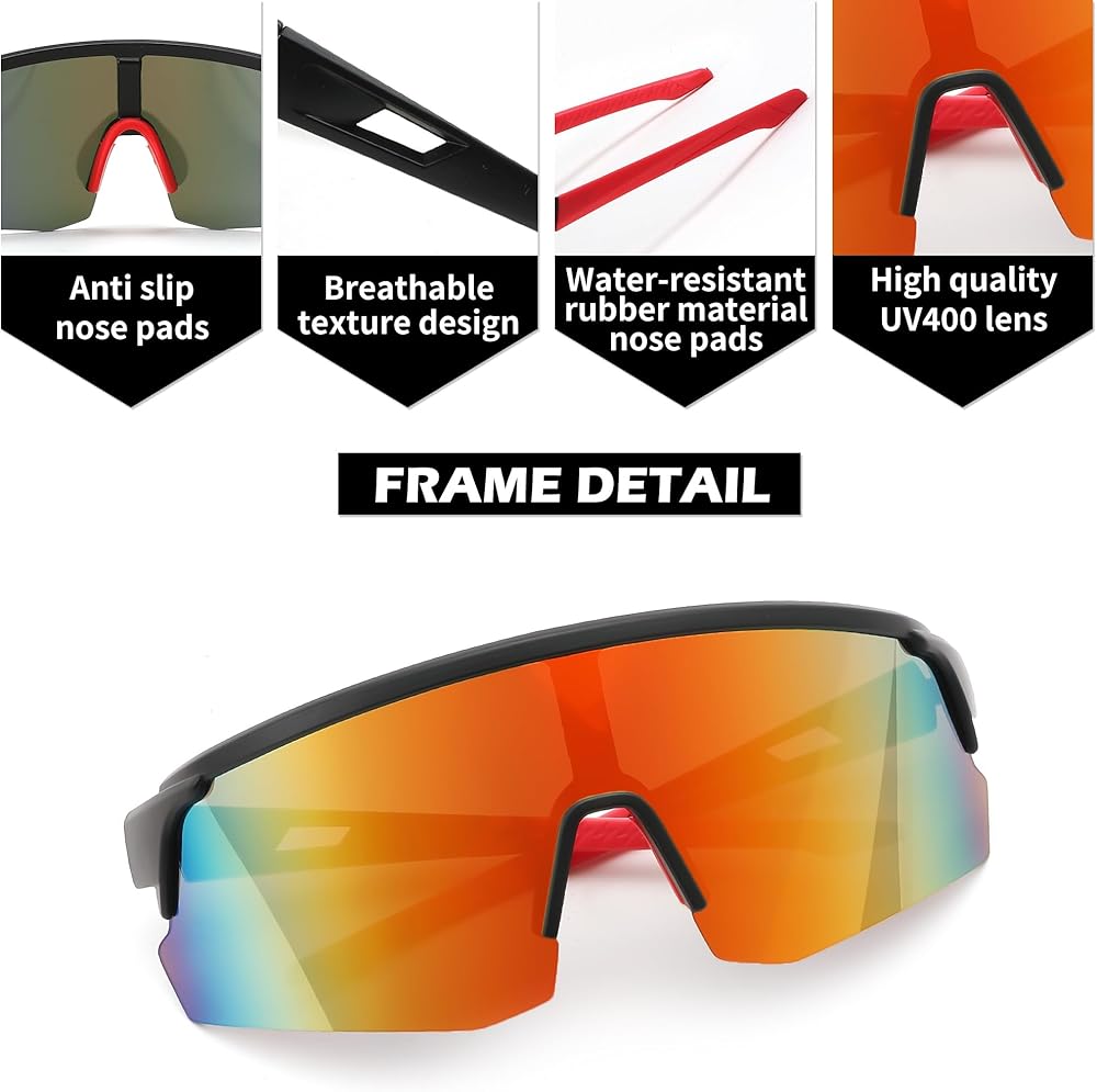 Suitbale for Outdoor Sports - It is an ideal choice for cycling,racing, golf, skiing, motorcycle, driving, running, fishing, boating, hiking, hunting, and other outdoor sports. Those super cool glasses can undoubtedly make you stand out from the crowd, it is the perfect buddy for outdoor enthusiasts.
