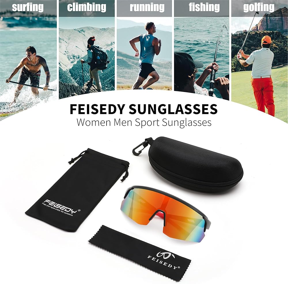 Sport Sunglasses - FEISEDY sunglasses features uni-body design. Wraparound sunglasses can effectively surround your face and protect your eyes from danger, making you more relaxed and aesthetically pleasing while participating in outdoor sports.