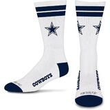 Show everyone you're a true fan on gameday or any day with these officially licensed Men's 2 stripe Logo Socks from For Bare Feet! Featuring bright, vibrant colors and a woven-in design, they prominently display your favorite team in two places - at the ankle and across the side of the foot. And since the design is woven right into the sock, it will stretch and move with you, and never bind or crack. Comfortable, durable socks have an anatomically formed y-heel to ensure the best, most natural fit. These socks aren't just comfortable, they're made from acrylic, which has a built-in moisture management system: the fiber wicks perspiration and moisture out of the sock so it can quickly evaporate, helping keep feet healthy and dry. And they're durable enough to last through wash after wash. Size large fits men's shoe sizes 10-13. Medium Shoe sizes 5-10