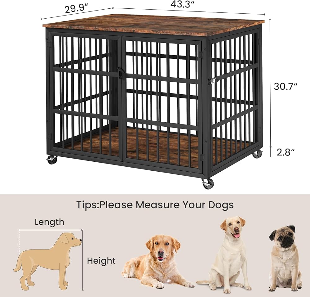 [Dog Crates for Medium/Large Dogs] 43.3"W x 29.9"D x 33.5"H. This kennel provides plenty of room for your furry friends to stand up and turn around comfortably. An ideal choice for short breaks or as a training tool.