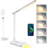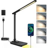 10 in 1 Smart Desk Lamp Led, Desk Light for Colleage Drom Room Office, Eye-Caring Table Lamp with Night Light, Lamp for Desk with 10W Wireless Charger, Dimmable Touch Lamp, Birthday Gifts for Women