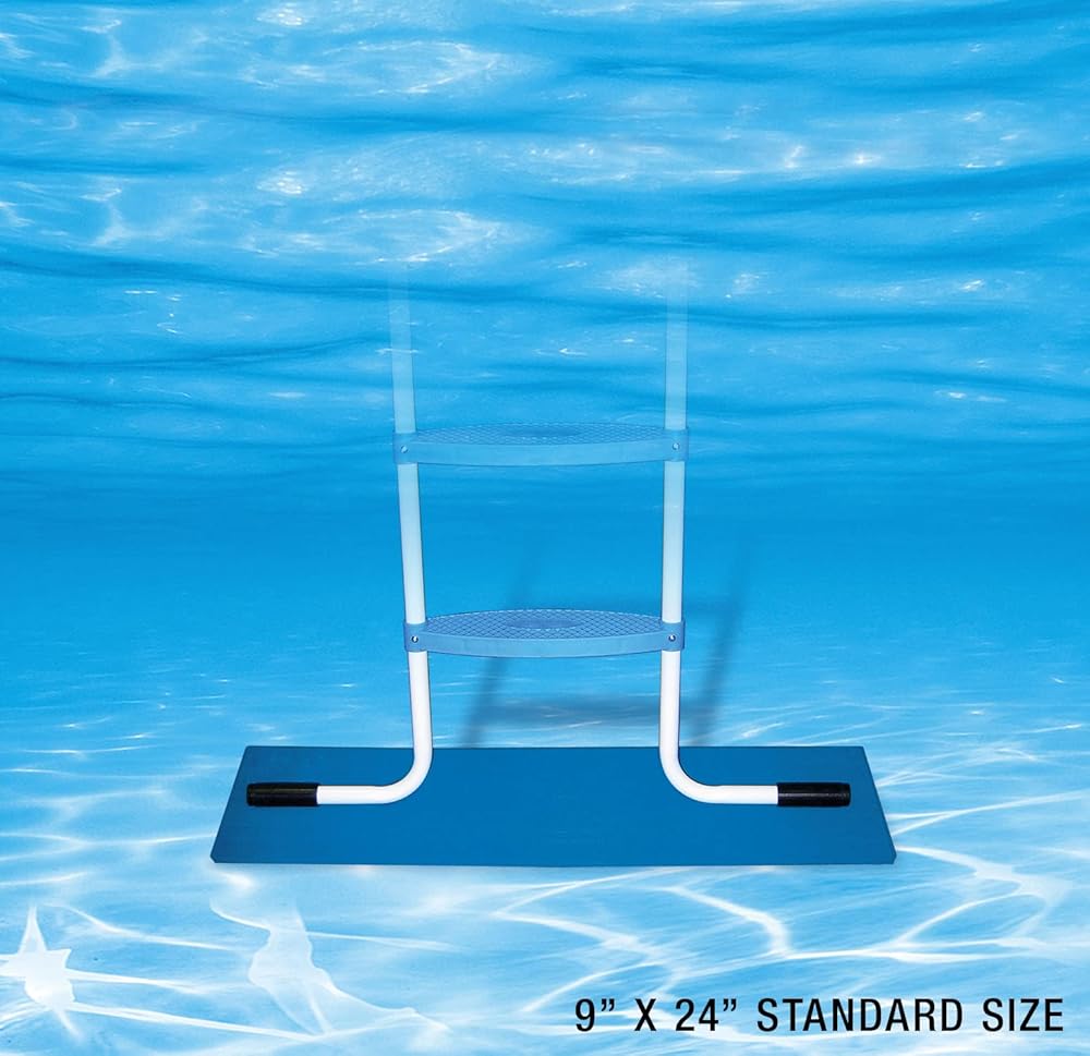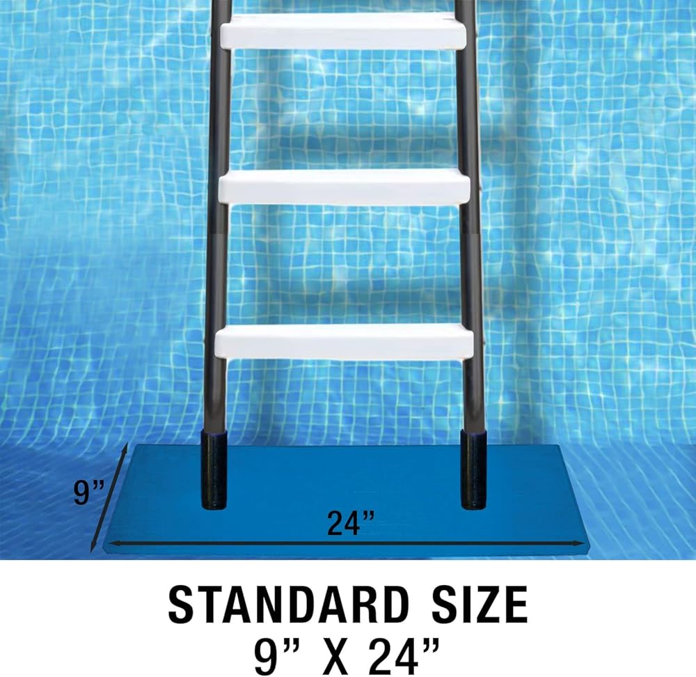 Poolmaster's Vinyl Liner Swimming Pool Ladder Pad / Pool Step Mat is a great choice for protecting above ground swimming pools and vinyl liner swimming pools from damage caused by ladder feet. The durable all-weather material and textured non-slip pattern will help maintain vinyl liners and protect liners from ripping or tearing from use of pool ladders and pool steps. Just place the smooth side down and underneath the feet of the ladder on the inside of the pool. The textured side of the pool ladder mat will provide good traction and security for stepping on and off the ladder in your above-ground swimming pool. Comes in 3 sizes, 2 smaller sizes to save space in pool and a larger option. Please use dimensions to find the right size for your space.