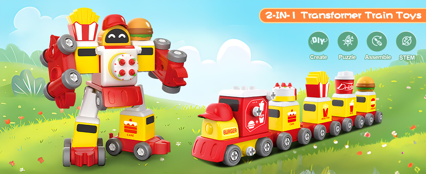 KIDS GIFTS - This transforming train robot that is food themed is so cute to play with, makes it a birthday, Children's Day, Christmas, holiday gift for preschool children, autistic children and kids age 3 4 5 6 7 8. If you have any problem after receiving the toy, please feel free to contact me and I will provide you with a solution.