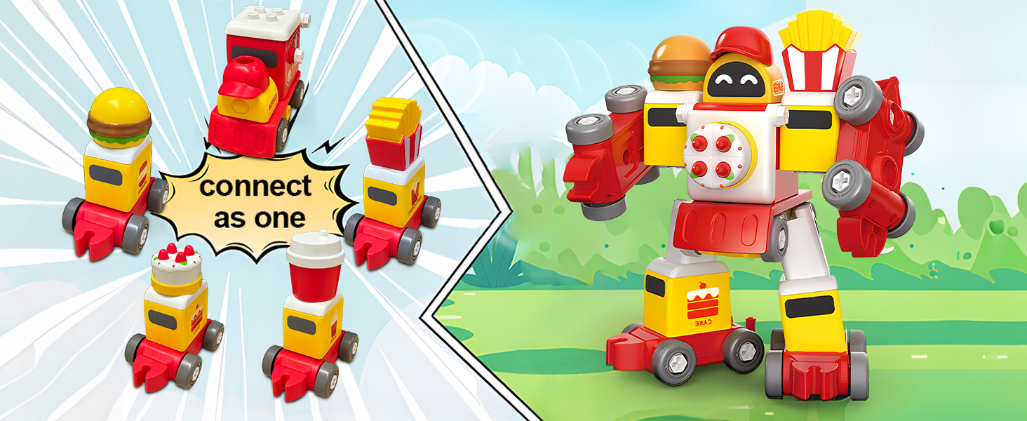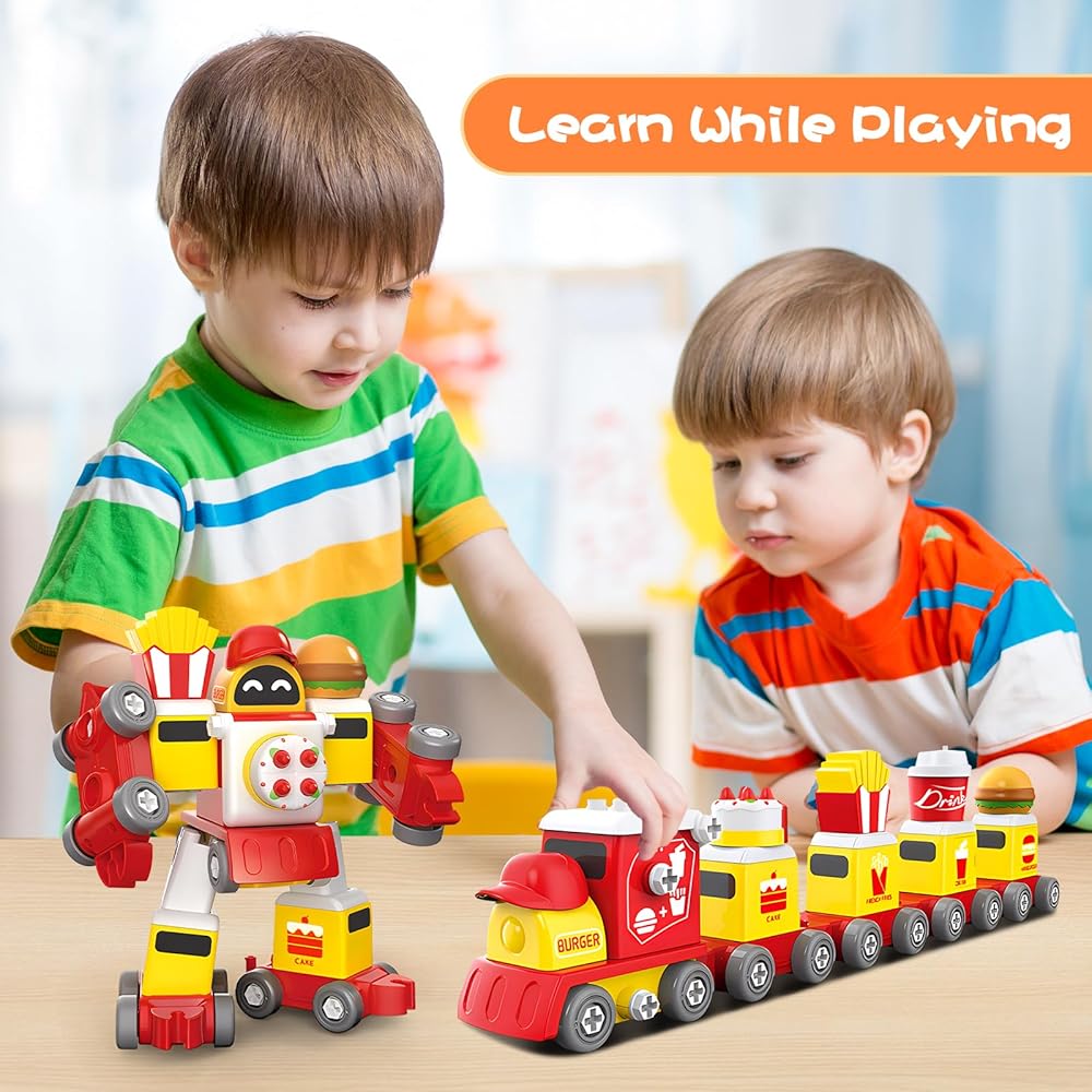 LEARN WHILE PLAYING - Cute food themes and bright colors will quickly catch the eyes of the little guy, promotes color discrimination in children. Children can develop hand-eye coordination, patience, concentration and practical skills while assembling or disassembling transformer toys. This transformers toys is the perfect activity to learn through play!
