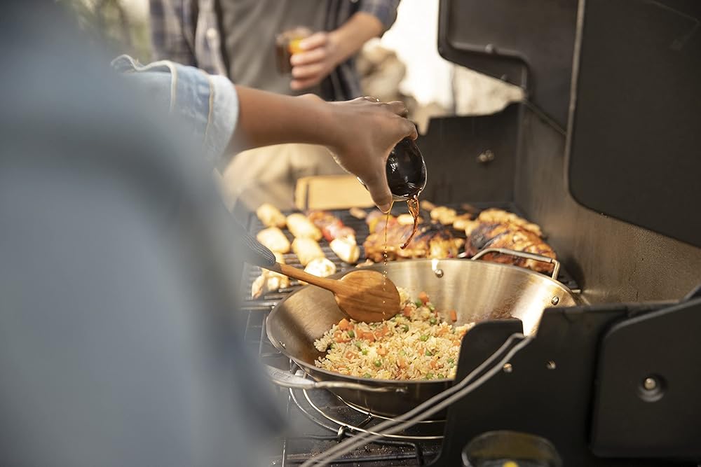 Sauté veggies, boil corn, or heat up sauces on the side burner.