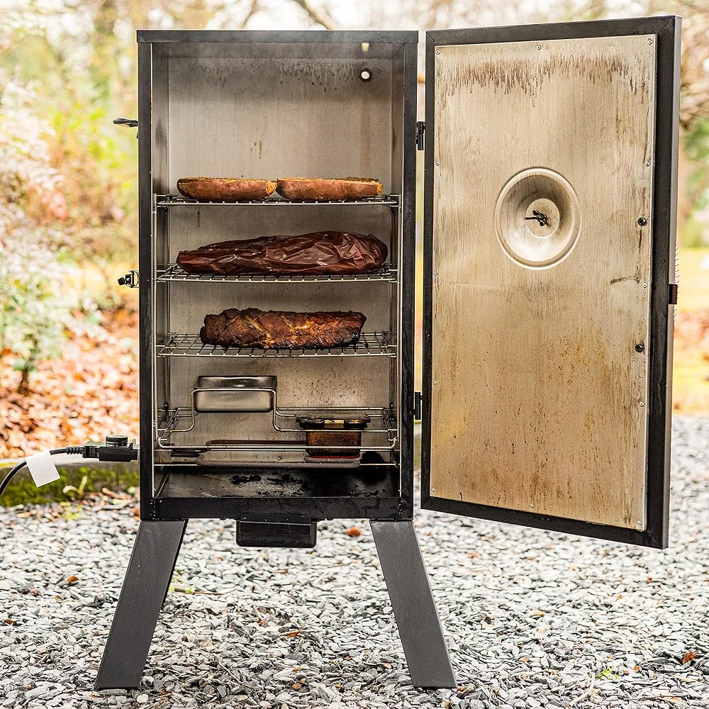 Masterbuilt® 30-inch Electric Vertical BBQ Smoker with Analog Temperature Control, Chrome Smoking Racks and 535 Cooking Square Inches in Black, Model MB20070210