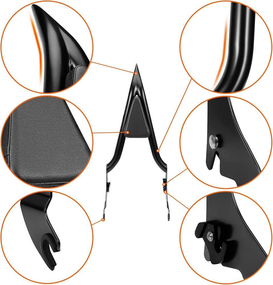 🏁【Compatible Models】--The integrated motorcycle sissy bar is specifically designed for Harley Touring 2009-2024, and the models include CVO Road Glide / Road King / Street Glide / Electra Glide / Ultra Limited / Ultra Limited Low. (Please confirm whether the backrest is compatible with your Harley before purchasing!)