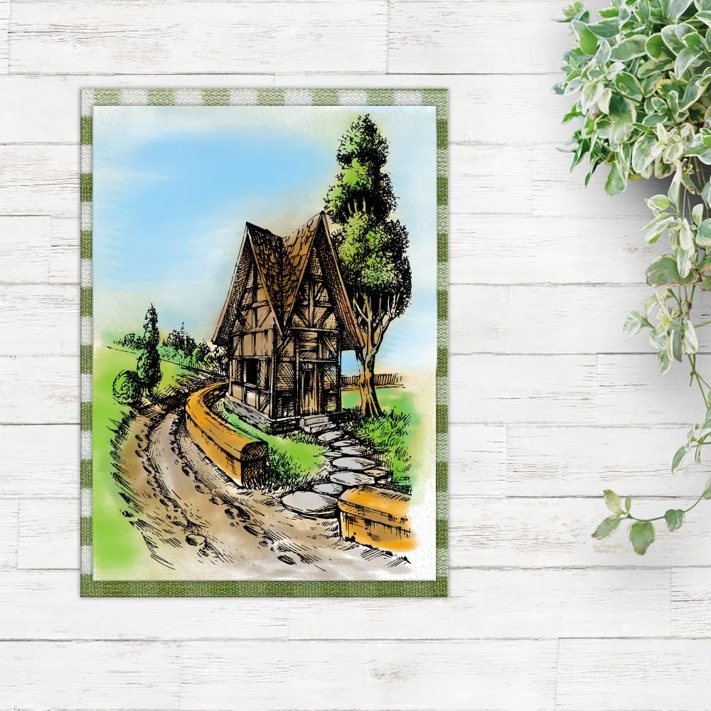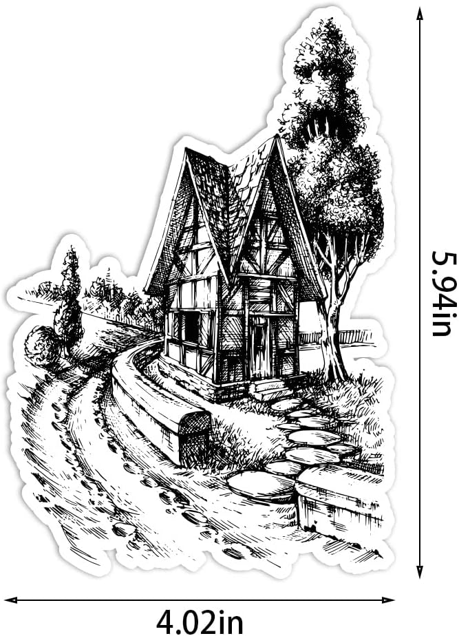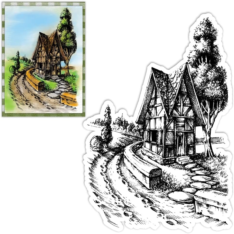 House Scenery Clear Stamps for Card Making Decorative Country Cottage Background Transparent Silicone Stamps for DIY Scrapbooking Supplies Embossing Paper Card Album Decoration Craft