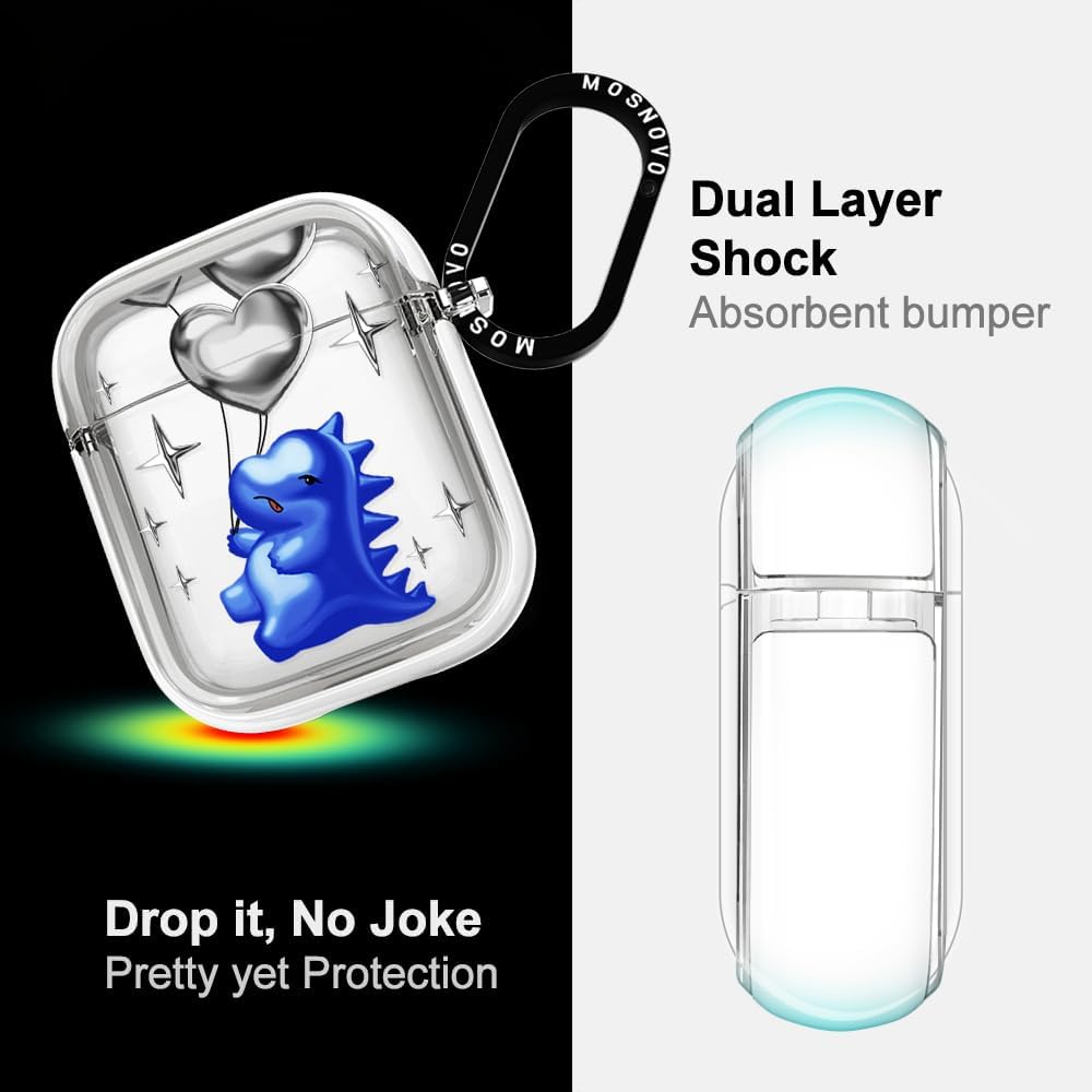 MOSNOVO Case for AirPods 1 & 2, Protective Clear Case with Shockproof Dual Layer Hard Luxe Metal Ring Designed for AirPods 1&2 Generation - Balloonasaurus