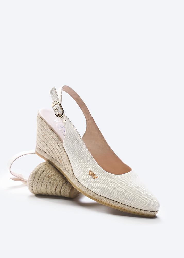 Handmade with love: With carefully selected fabrics these Palomera espadrille canvas slingback women's shoes are made using soft, breathable 100% organic canvas certified GOTS and 100% natural jute midsole. With an easy-to-fit adjustable heel strap, delivering amazing comfort and style. Lovingly handcrafted in Spain.