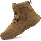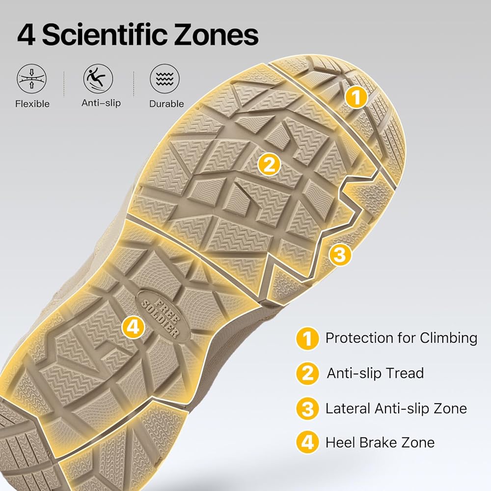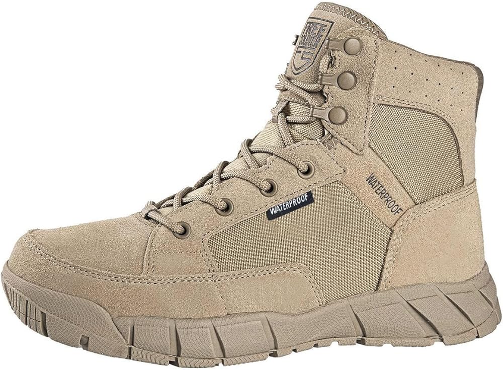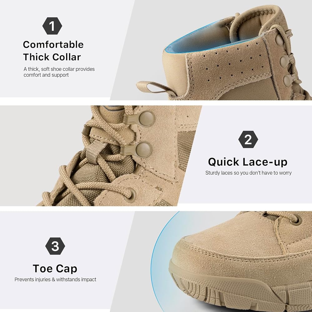 DURABLE & PROTECTIVE - This mens hiking boots upper made of suede leather with 1000D Cordura fabric, which is durable and scratch-resistant. EVA midsole, lightweight and flexible, supply excellent cushioning for work or hiking. All terrain outsole, great grip with geometrical pattern design, non-slip work boots for men. Strengthened toe cap and heel provide full protection, anti-collision and ankle support. Suit for tactical, military, combat, hunting, motorcycle, airsoft boots