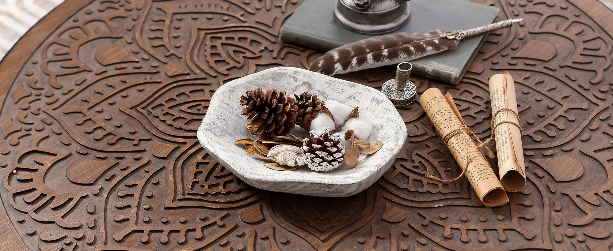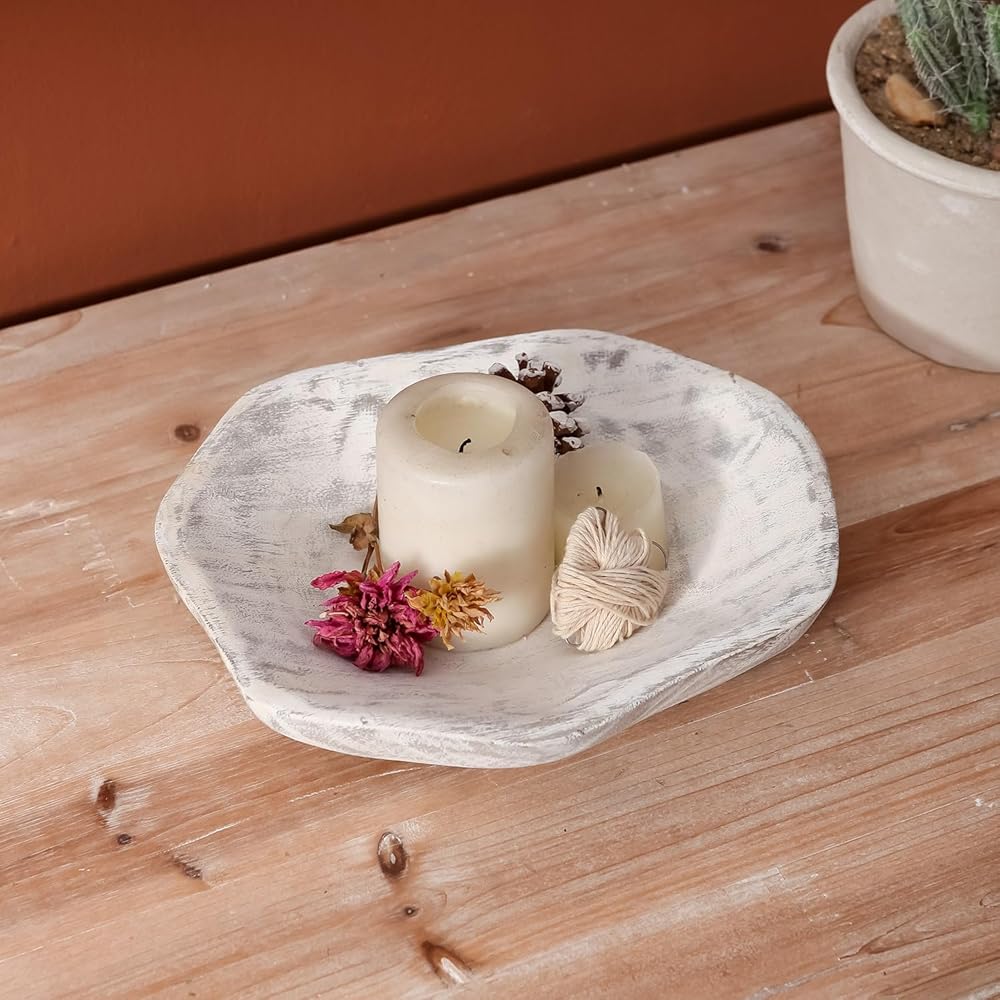【Centerpiece Decor】 - The farmhouse key bowl is finished in a charming distressed white for an antique effect. It's perfect as a table centerpiece to fill with interesting rocks, decorative balls, pillar candles, plant or potpourri