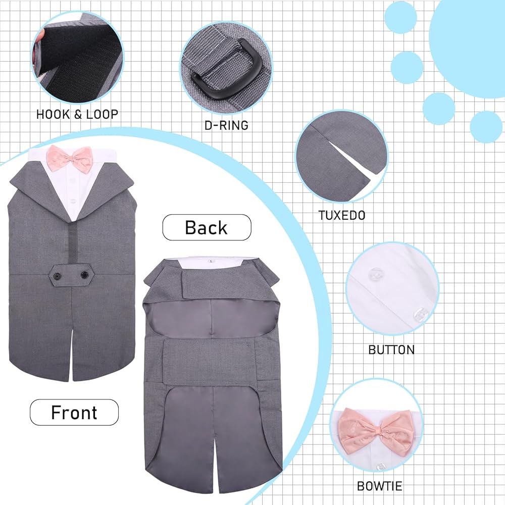 🐶🐶 The formal tuxedo suit design will make your pet more attractive and adorable, helping your dog become the brightest star in the crowd. These dog outfits are hand and machine washable, which can be used thousands of times.