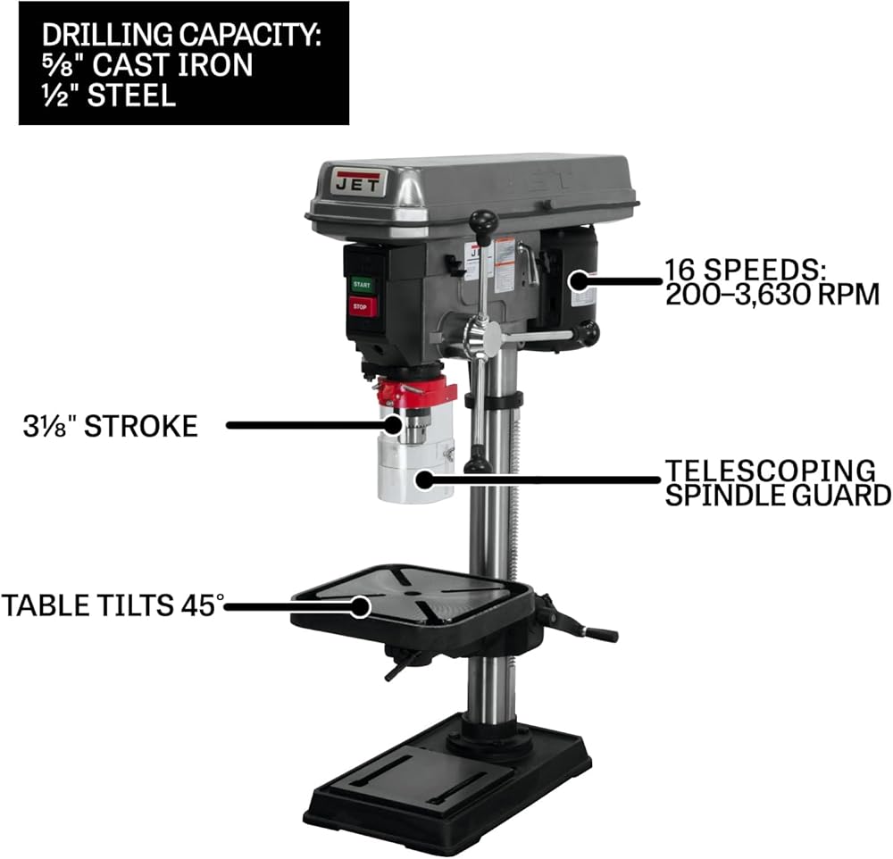JET 15-Inch Benchtop Drill Press, 16 Speed, 3/4 HP, 115/230V 1Ph (Model J-2530)