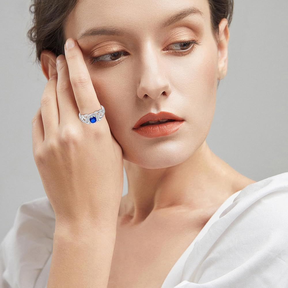 ❤Perfect Gift Size❤ This Celtic Knot rings set with 22 pieces and 1 piece round-brilliant-cut created birthstone and AAAAA cubic zirconia.The infinity birthstone jewelry comes with an delicate gift box.You can give this celtic knot ring to a very meaningful woman or girl in your life on Christmas, Valentine's Day, birthdays, or anniversaries.