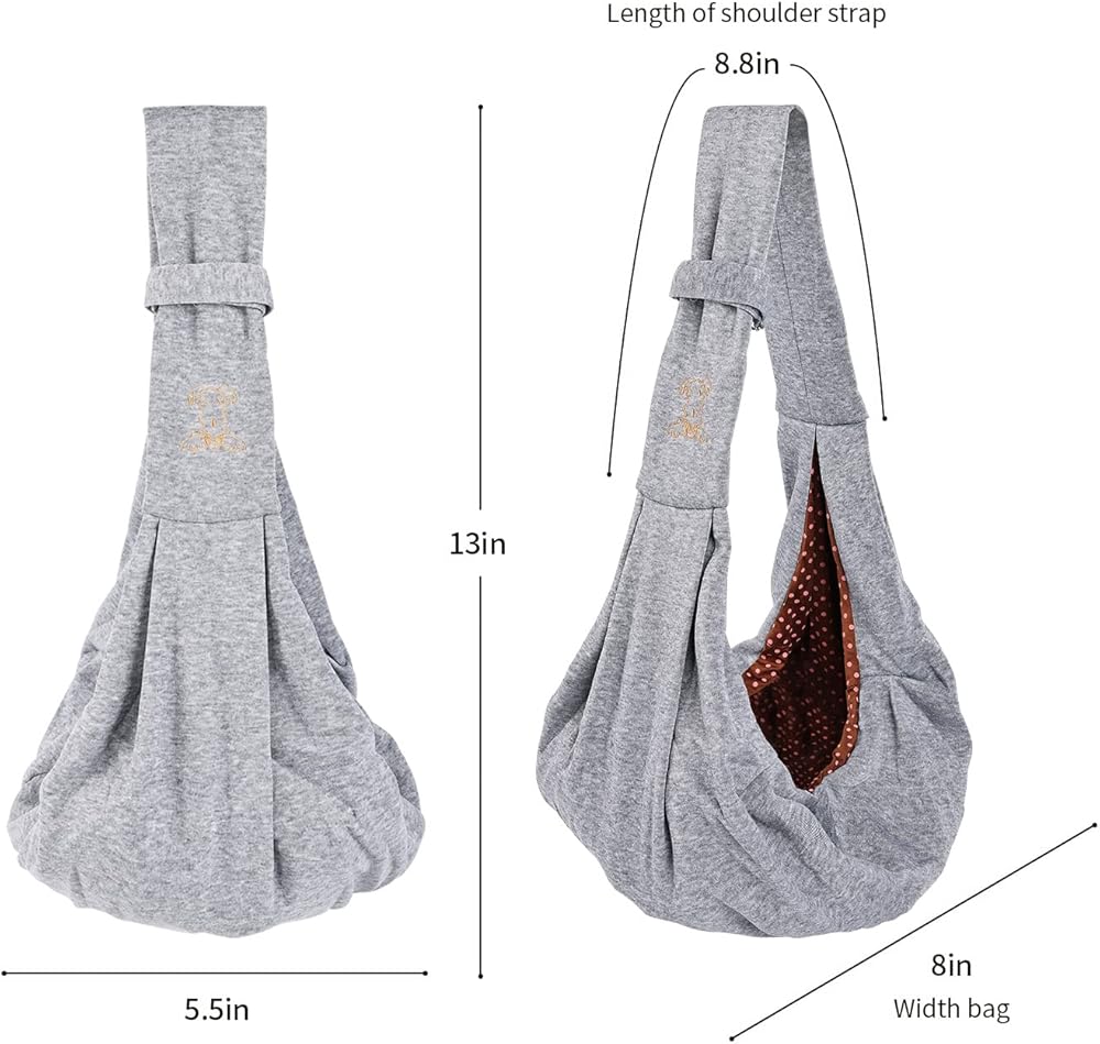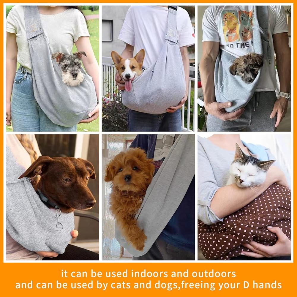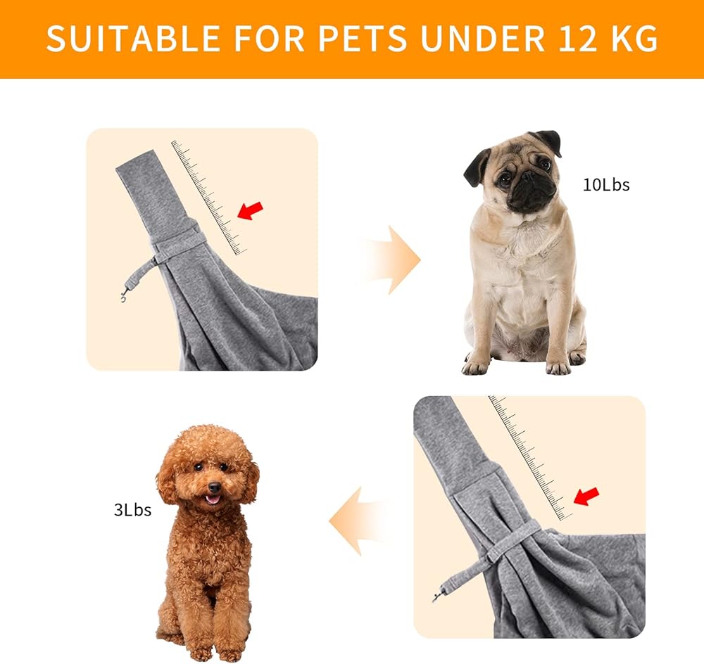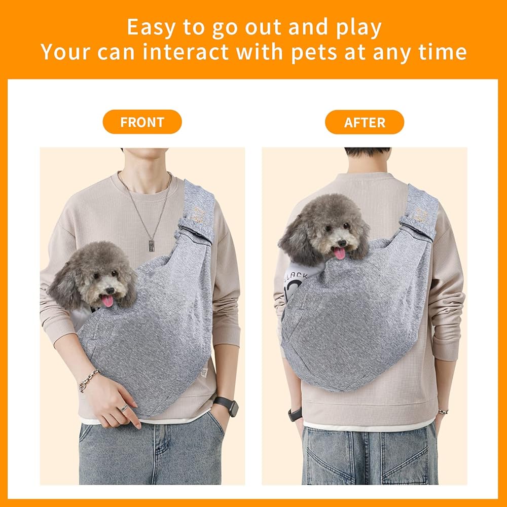 [Quality Assurance, Safety first] The dog sling is made of high-quality soft cotton fabric, which is skin-friendly and breathable very comfortable. The pet shoulder carrier includes an adjustable safety hook that is attached to the pet's collar to prevent the pet from accidentally falling out. The hands-free backpack loops over the shoulder while the pet rests in a pouch on the other side of the waist to keep the pet safe and comfortable.