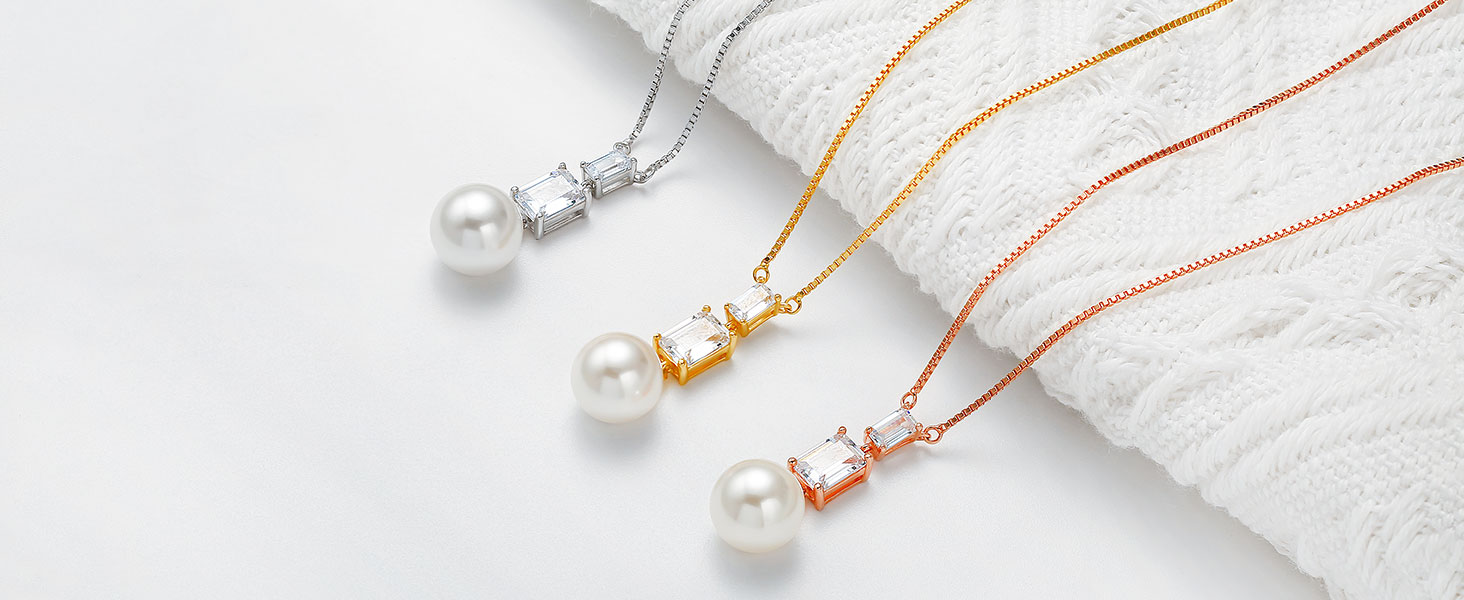Sterling Silver Necklace for Women- Pearl choker necklace was made by elegant silver box chain plating with 18K gold in rose gold, white gold and yellow gold, matching all styles and colors.
