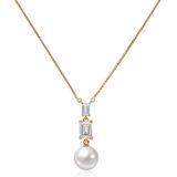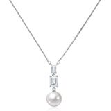 Unique Cubic Zirconia Necklace Design- cushion cut AAA+ CZ diamond embellished upon the round pearl that shows the fascinating geometry. No women can refused such a beautiful mother of pearl necklace.