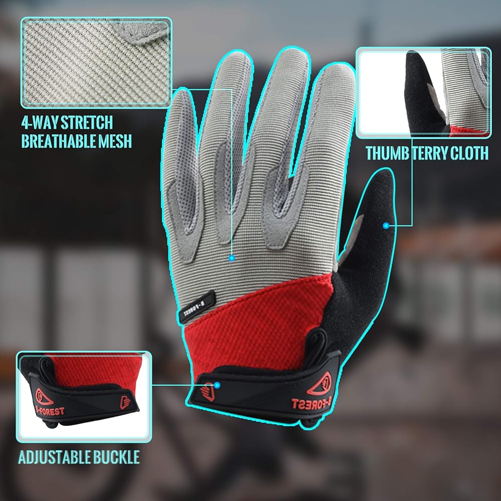 B-Forest Cycling Gloves/Bike Gloves Full Finger Road Bicycle Gloves for Men and Women Mountain Riding Gloves– Anti-Slip 5mm Gel Pad Shock-Absorbing MTB Motorcycle Gloves
