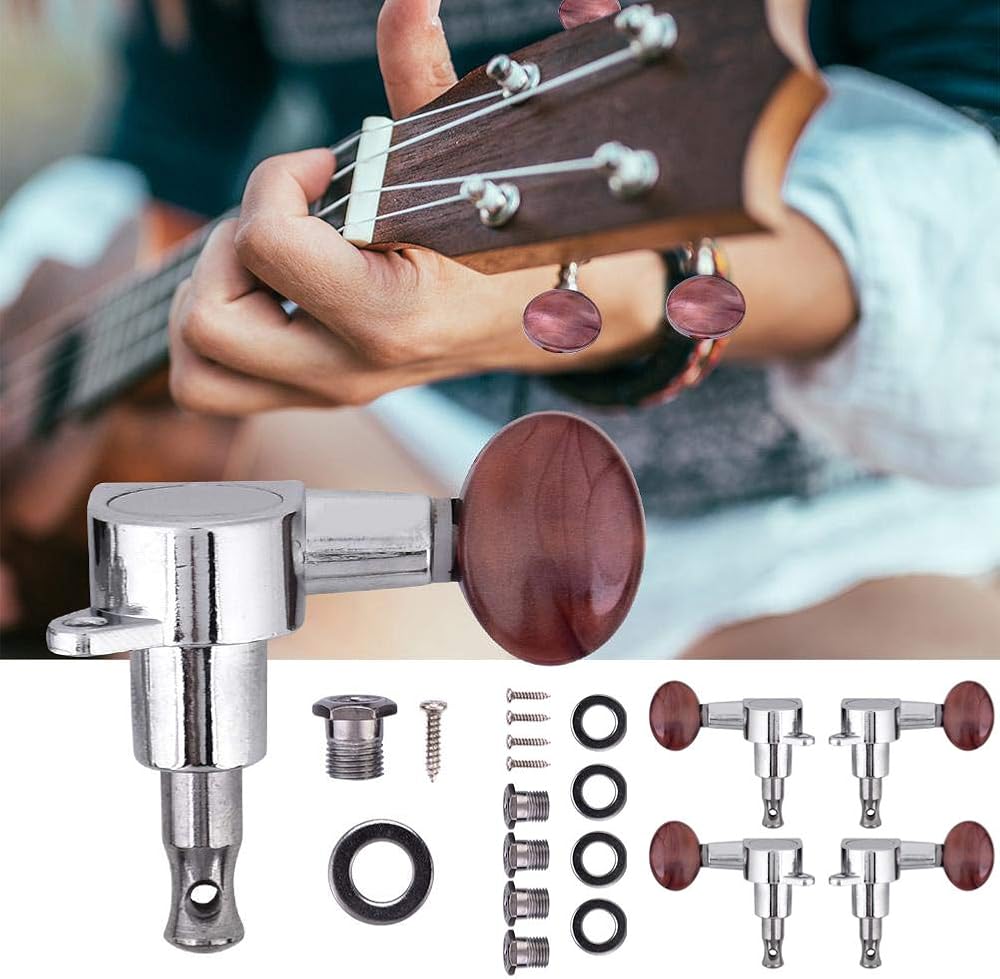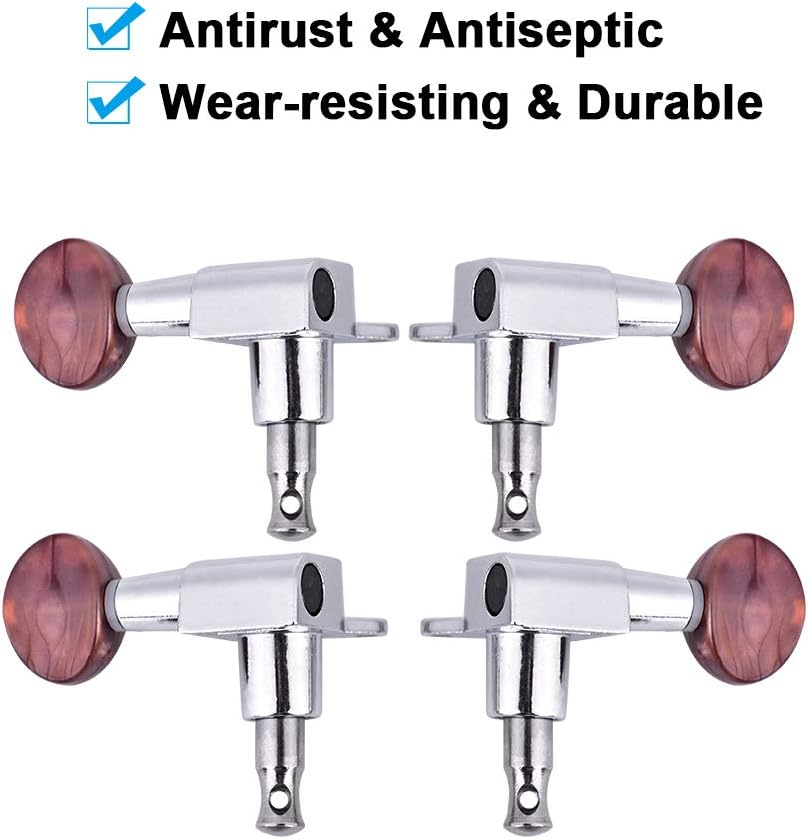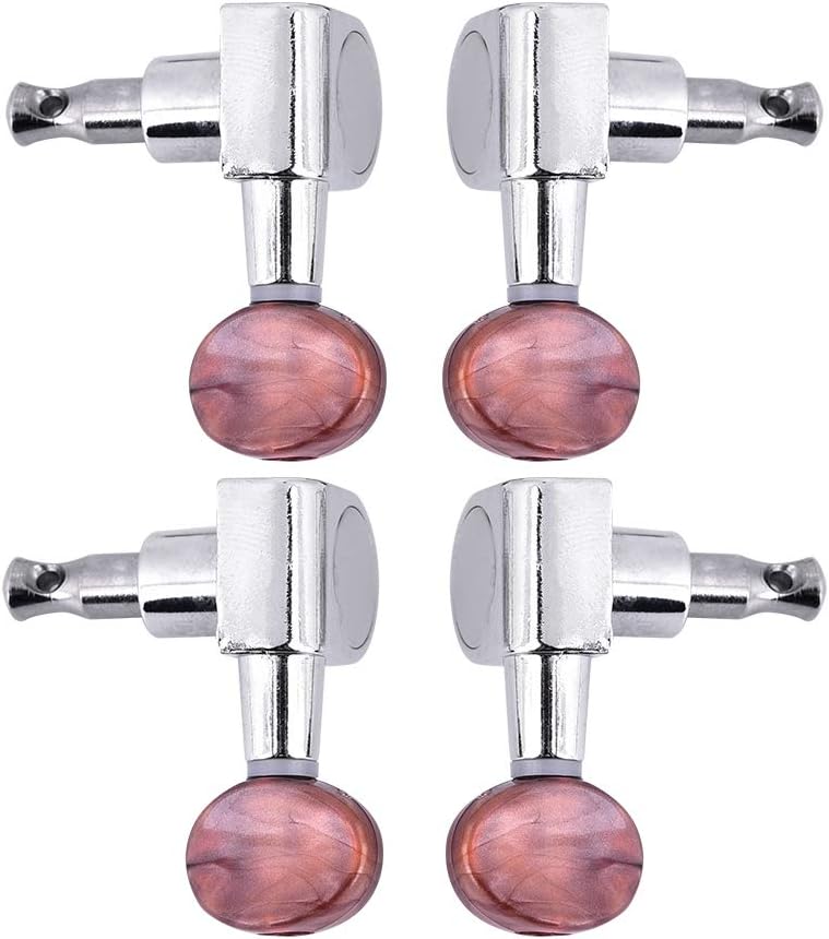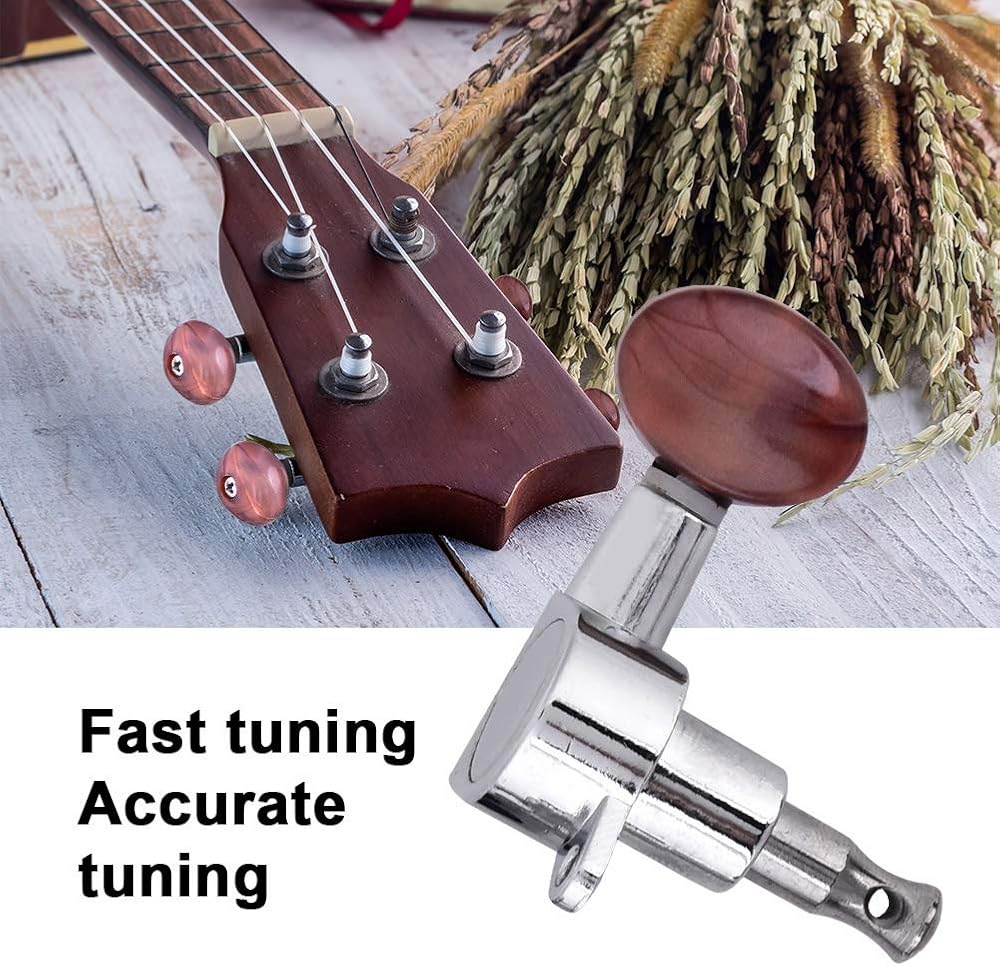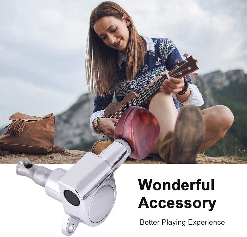Ukulele String Tuning Pegs, 2L2R Silver Enclosed Locking Tuners Red Round Machine Heads for Ukulele 4 String Guitars