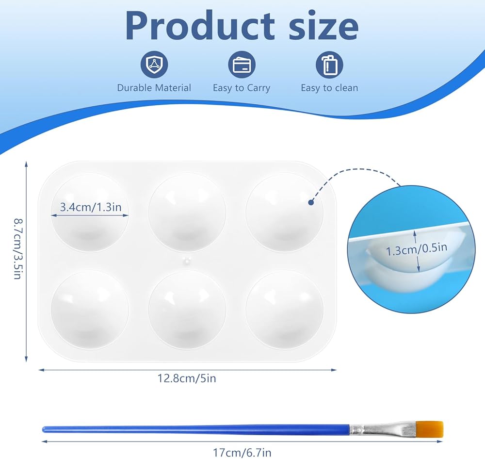 User-Friendly Design: Each palette features 6 separate wells that keep your colors nicely separated and organized. The white color of the palette enhances color clarity, making it a breeze to work with.