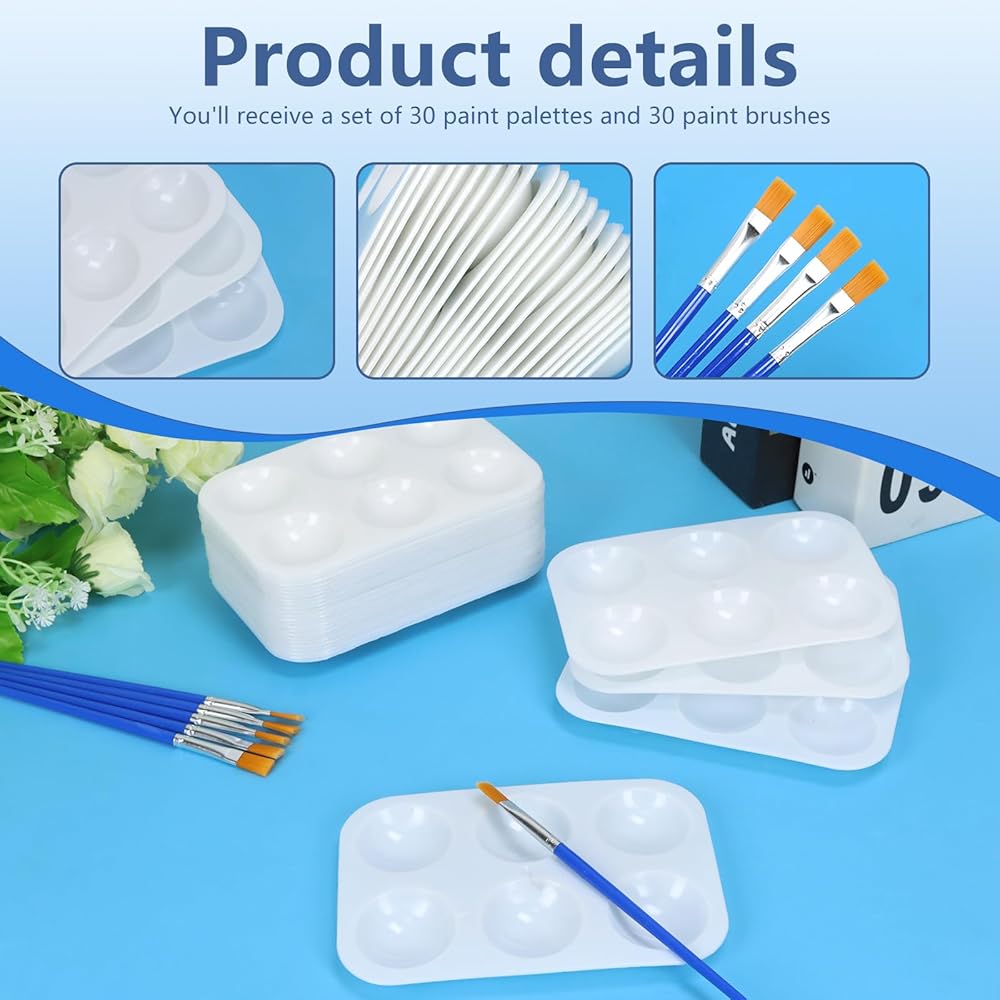 Size: You'll receive a set of 30 paint palettes and 30 paint brushes, each measuring 5*3.5*0.5 inches.