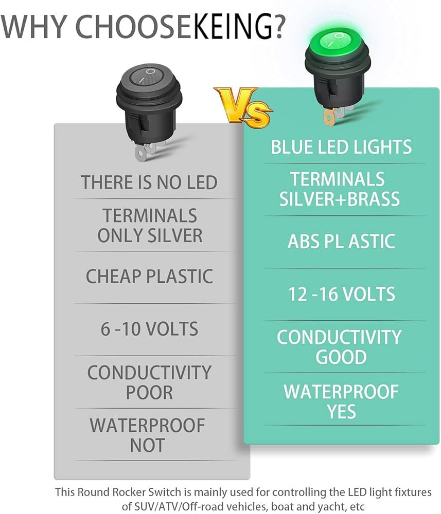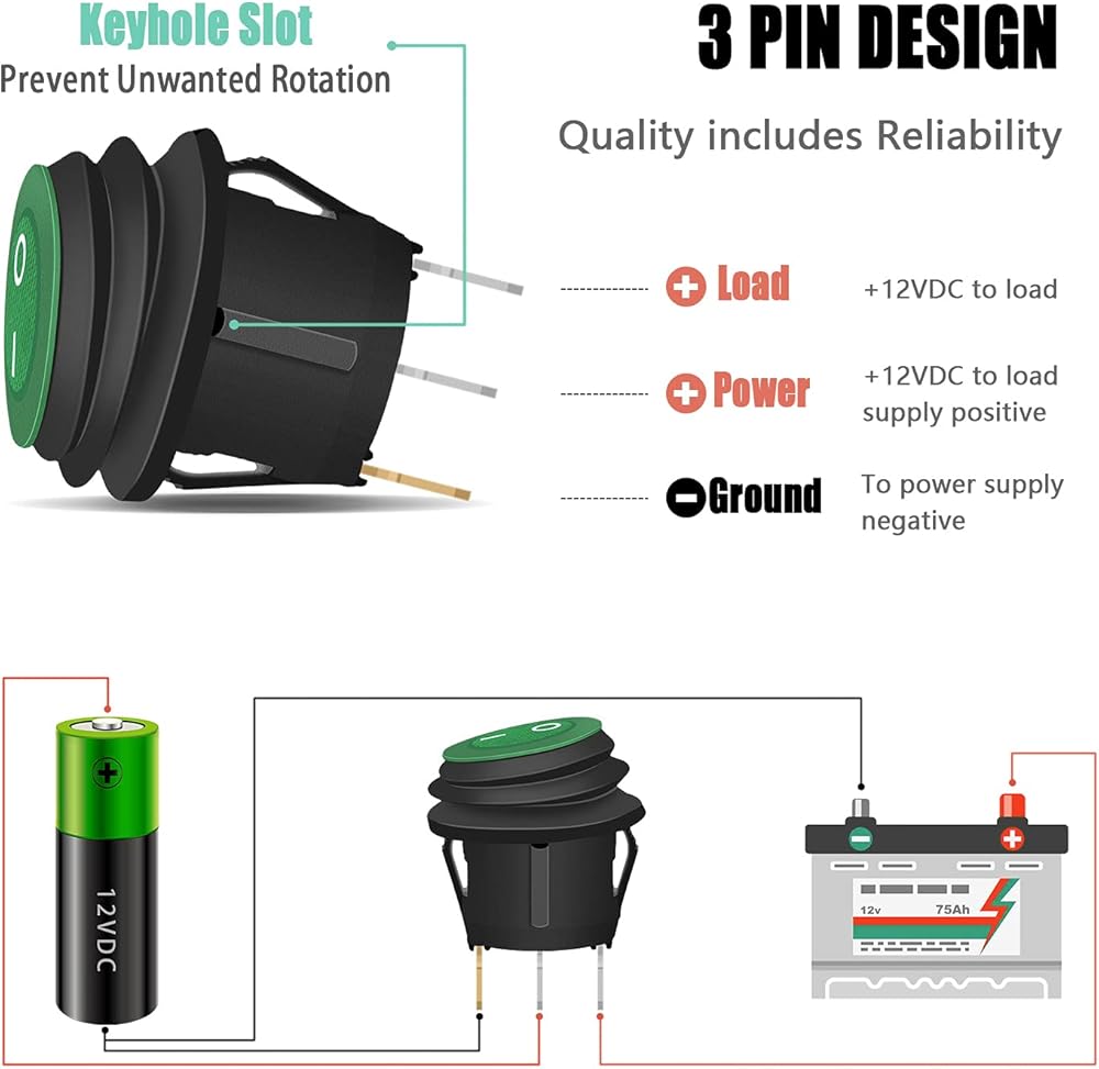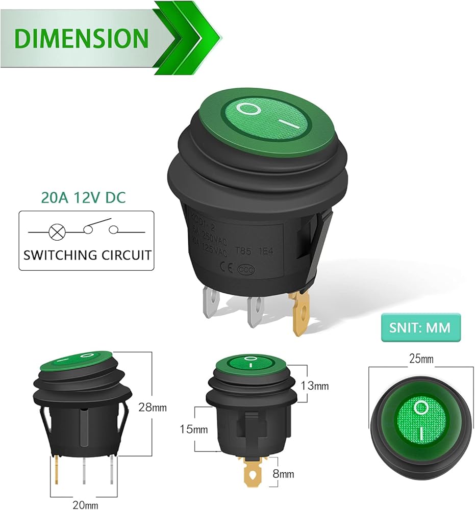Easy Installation: 3 pin Round rocker toggle switch, suitable for 0.8''/20mm mounting hole; With a keyhole slot to prevent unwanted rotation.
