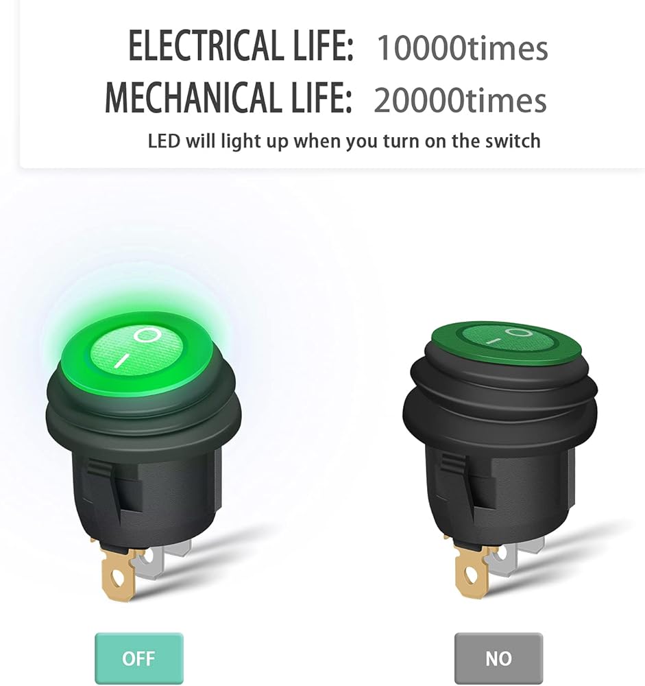 Package Includes: 5 Pack 3 Pin Red Round Toggle LED Switches; 10 x Red wires; 5 x Black wires (Enjoy 5 Years Quality Warranty , Our Strict Quality Control System, We Test Each Item and 100% Ensure In Good Condition Before We Ship.)