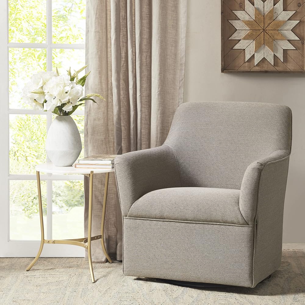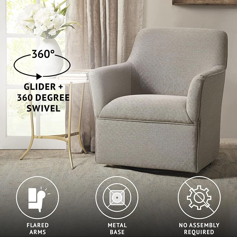 The Madison Park Arianna Swivel Glider Chair offers a simple yet sleek look for your living room décor.
