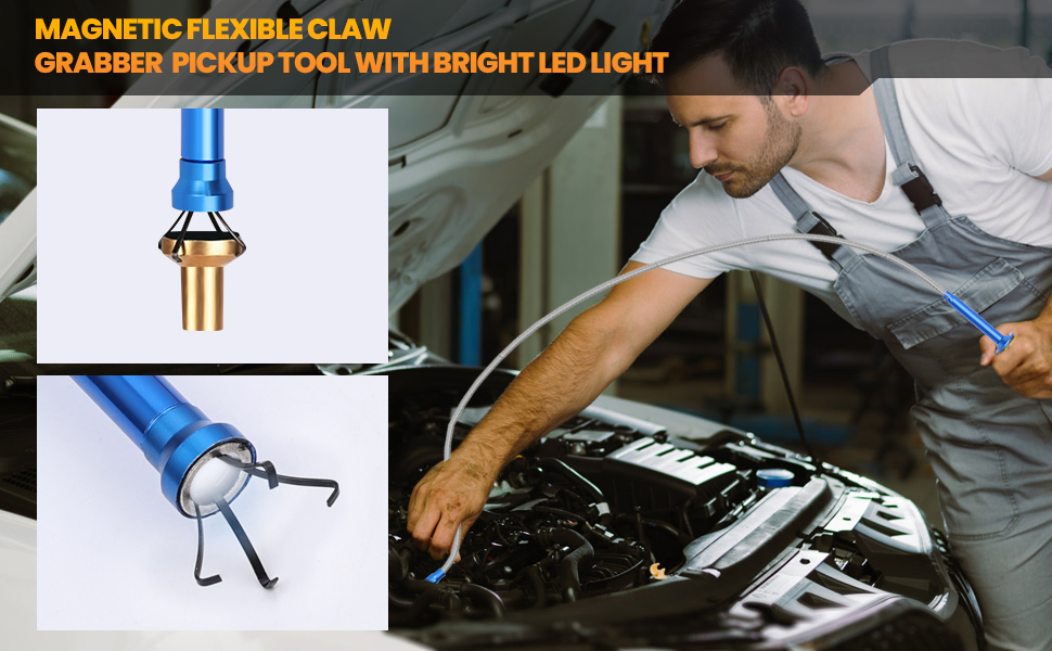 【Pickup Tool】Need help retrieving nuts, bolts, screws, jewelry and lost items from hard-to-reach places? We have you covered. Our Magnetic flexible pickup tool is 24 inches long with a cable so thin it can go down the drain! And with LED lights!